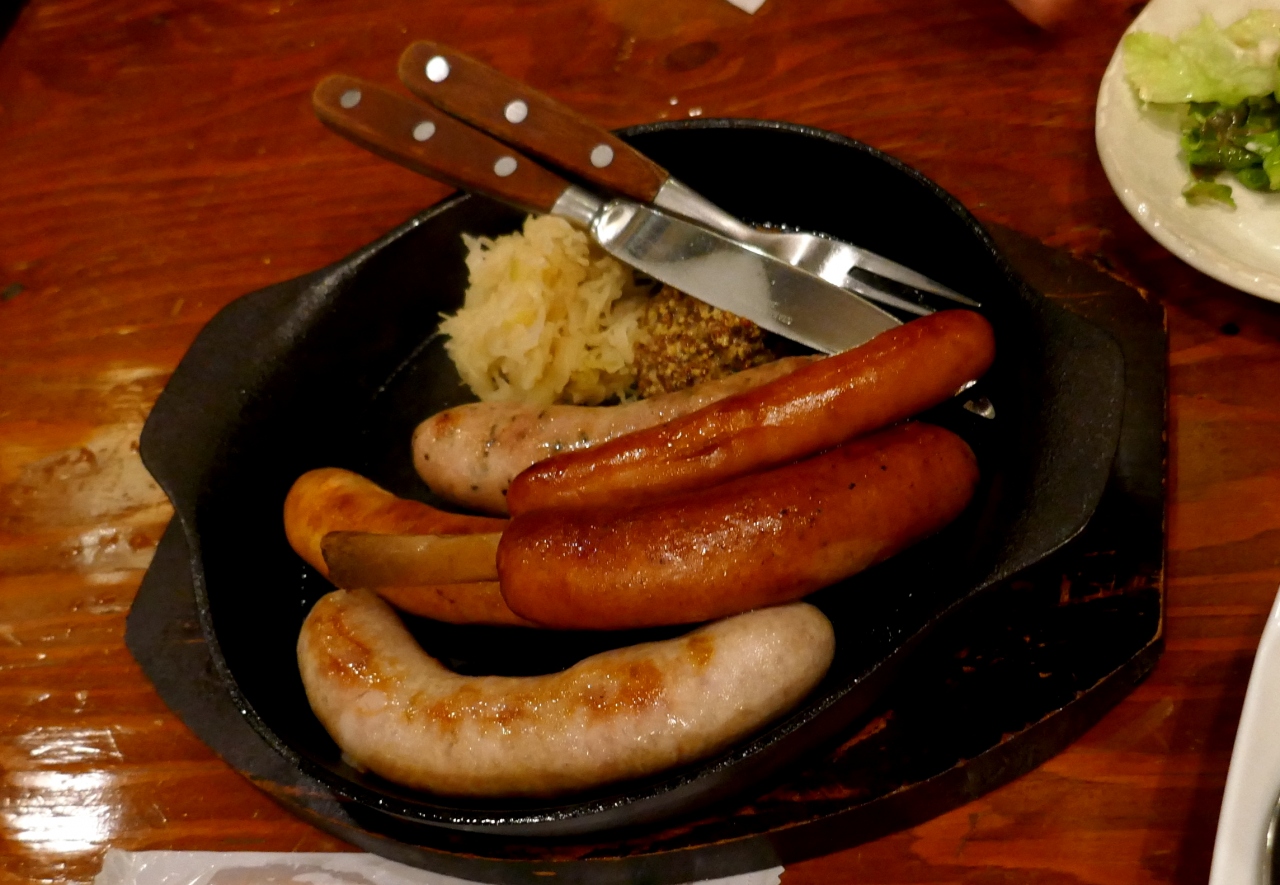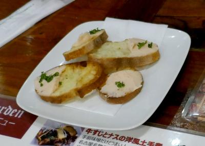 ともかく皆でビールが飲みたくて入る.ドイツ風の肴もおおい.ソーセージやザウアークラウトもある.調子に乗ってビールは飲むは,ベルギービールなども飲むは,高いワインを飲むはで一人10000円になってしまった.全員二日酔い気味だったので,普通の飲み方だと6000円位が予算かな.一つ一つは高くない.ビールが飲みたければ入っていい店.ワインもいろいろあるが,少々高めのものに要注意