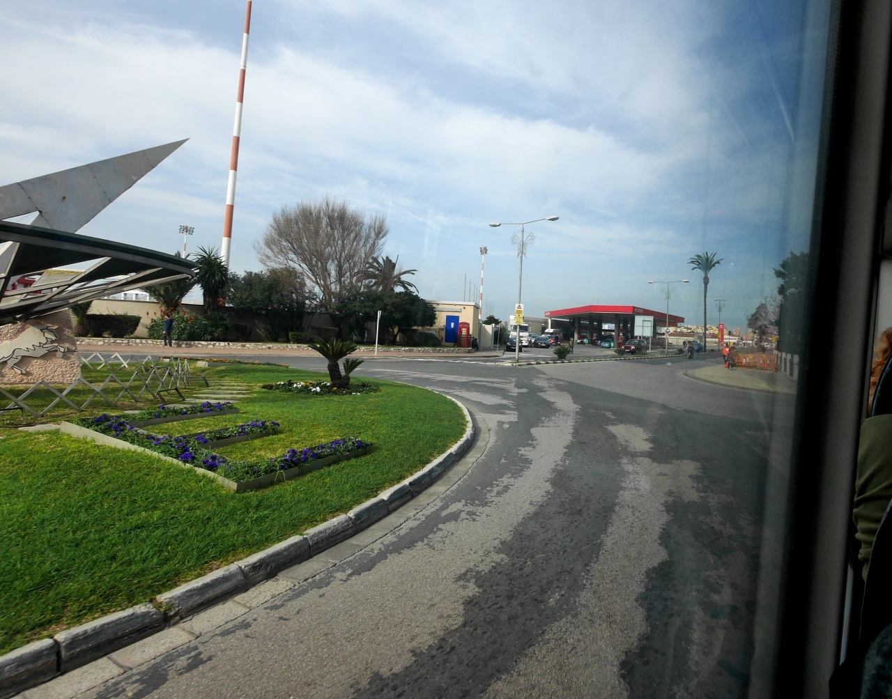 国境の検問所から中心街やケースメイツ門にいくのには10番のバスに乗っていくが,その路線上にジブラルタル空港の滑走路がある.道が滑走路と交差する珍しい空港だ.ロンドンなどと結ぶ便が一日5便しかないので,離着陸は時間を合わせる必要があるが,滑走路はバスから見える.実は一瞬なのでカメラには撮り忘れた.