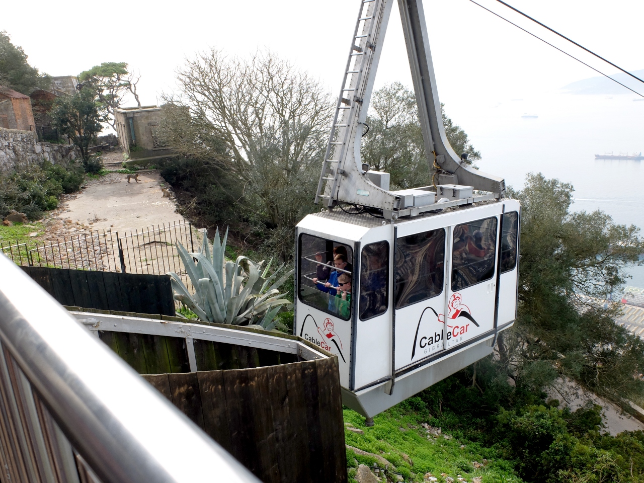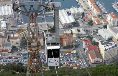 ここではロープウエィがケーブルカーという名前.往復12.75ポンド 18ユーロと結構高い.しかしRockへの急なのぼりからどんどん視野が広がるのがいい.アフリカから,スペインまで広く見渡せる.片道でも10.75ポンドなので本当に迷う.歩いて降りてくる気なら片道で良いが,2ポンドならと往復買う人が多いだろうな.