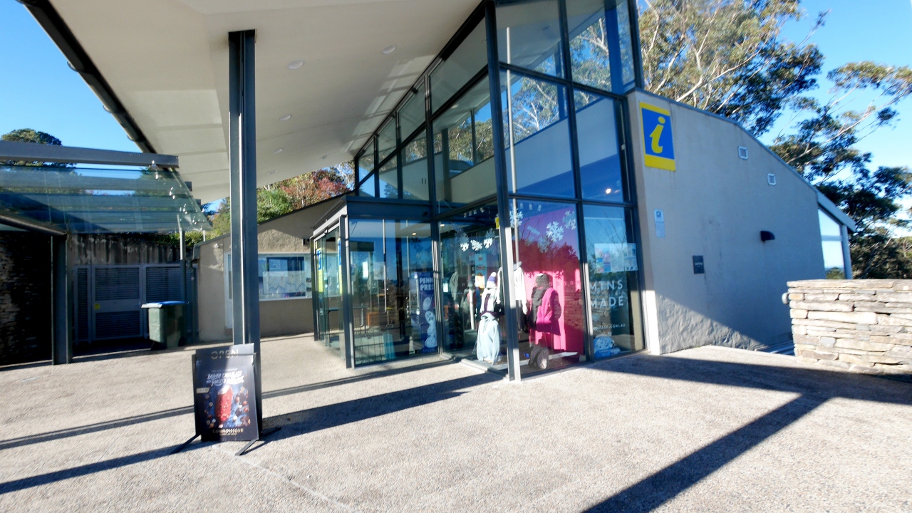 Echo Pointから徒歩5分,岩の中まで入れるThree Sisters Echo Pointには観光案内所,トイレ,売店,駐車場