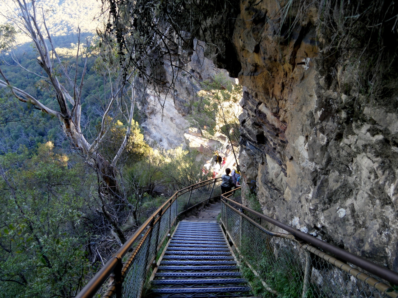 Sky Way East StationからTrailをEcho Point, Three Sistersまで歩いて往復した.たくさんの展望台があり,そこから少しづつ趣の違ったBlue Mountainsの山々や谷,森がみえる.晴れて見通しも良く楽しかった.Three Sistersの中に道があり,小さなほこらのようなところまではいれる.絶景であった.最初のLook Outがプリンスヘンリールックアウトというこの名のLook out