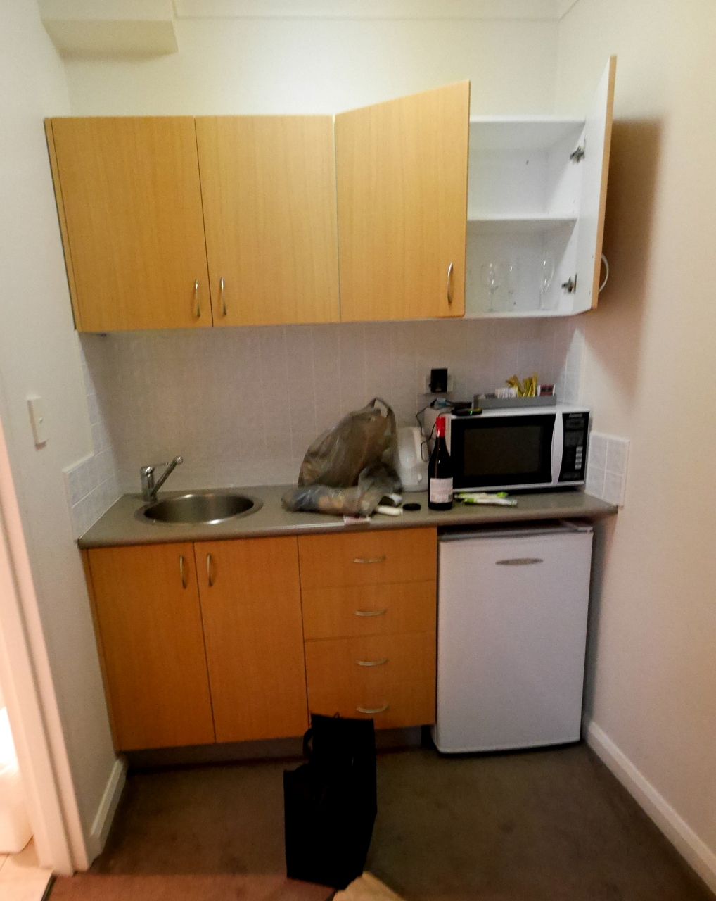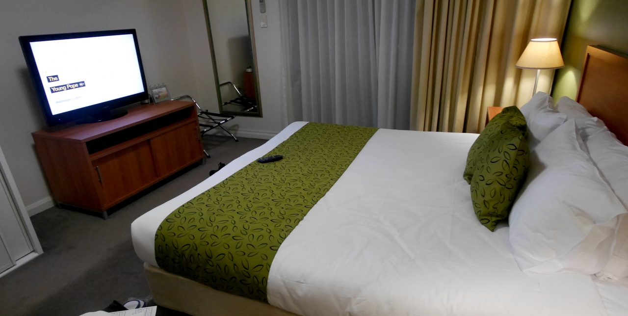 LeuraのLeisure Inn Spiresに2泊 二泊素泊まり26820円.アパートの1室,気兼ねないアパートはいい.最初にカギをゲットするのに苦労した.休みなので案内に電話をかけて,郵便受けを暗証番号で開ける.多少の英語力は必要.シャワーのみの1Kだが,きれいな部屋だった.ベッドもダブルで大きい.