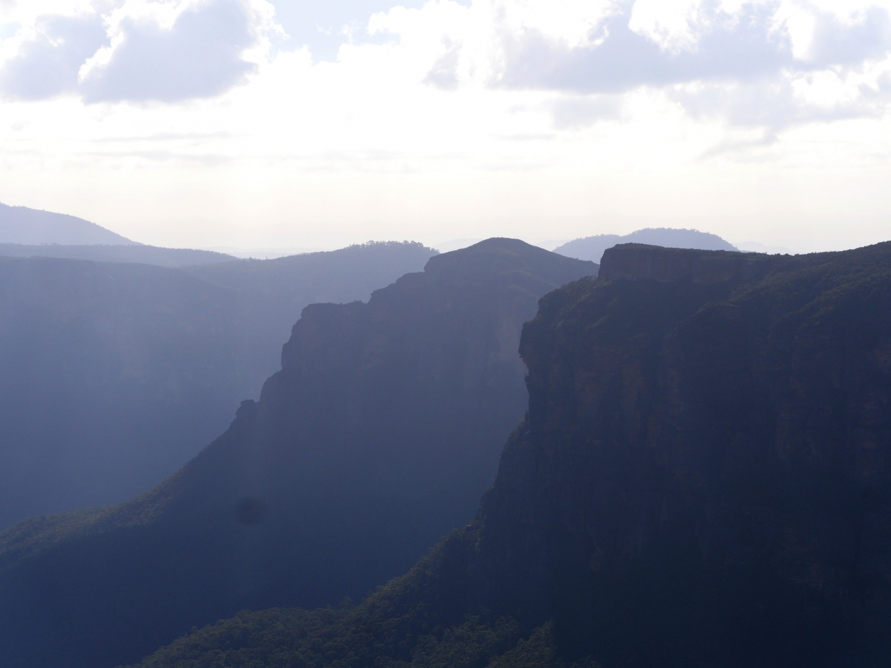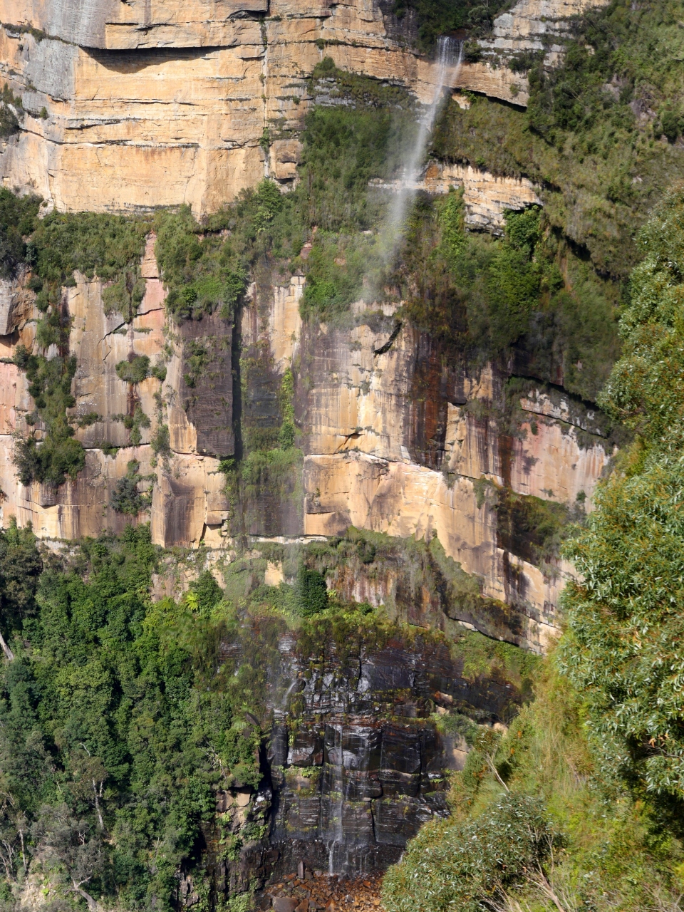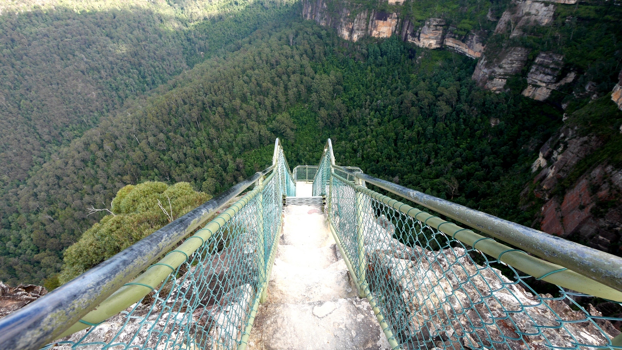 Blackheathの街から一番行きやすいLookout.非常に景色がいい.よくみるとPulpit Rockのすごい展望台の階段もわかる.Bridal Vail滝も良く見える.風でた気が吹き飛ばされるさまも面白い.滝まで歩いても往復30分強だが,滝の近くでは滝の美しさはわからない