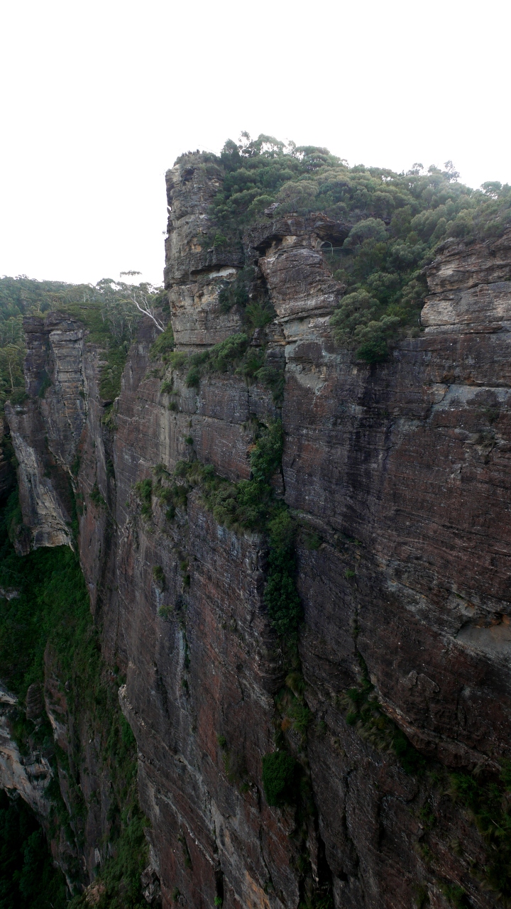 Blue Mountainsは不思議なところだ.頂上部分が大地となり,そこに街や別荘地がある.そして街を下っていくと,北も南も大きな断崖になり,広大な谷につらなる.そこにはユーカリの木を中心とした温帯の原生林が広がる.赤い断崖はまるでグランドキャニオンのよう.密林があるので少し趣が異なるが.まあすごいところだ.来てよかった.