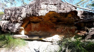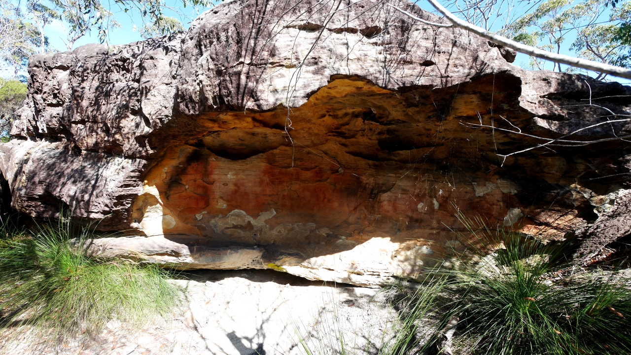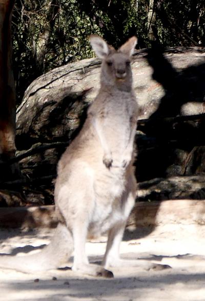 入場料25$.カンガルーが放し飼いにされ,触ることもできる.それ以外の小動物もさわれる,なかなかユニークなところ.コアラも見物した.しかしお目当てはアボリジニに居住跡.本当に抹殺された民族,歴史を知ると悲しくなる.ここにも手の跡がある岩陰など,狩猟の際の臨時のシェルターであったようだ.このあたりのアボリジニ DarkinjungとGuringai族,ここも1770年代にヨーロッパ人の持ち込んだ伝染病やスポーツハンティングとした虐殺によって,ほとんど絶滅した.その後も隔離政策など,1967年にやっと市民権を得られた.白人は根こそぎ文化を破壊してしまう.ハワイに行った時も悲しくなったが,ここではもっと悲しい.一般の人には動物を触れることができる楽しいParkなんだろうなあ.なおコアラはNSWでは人が抱くことはできない.
