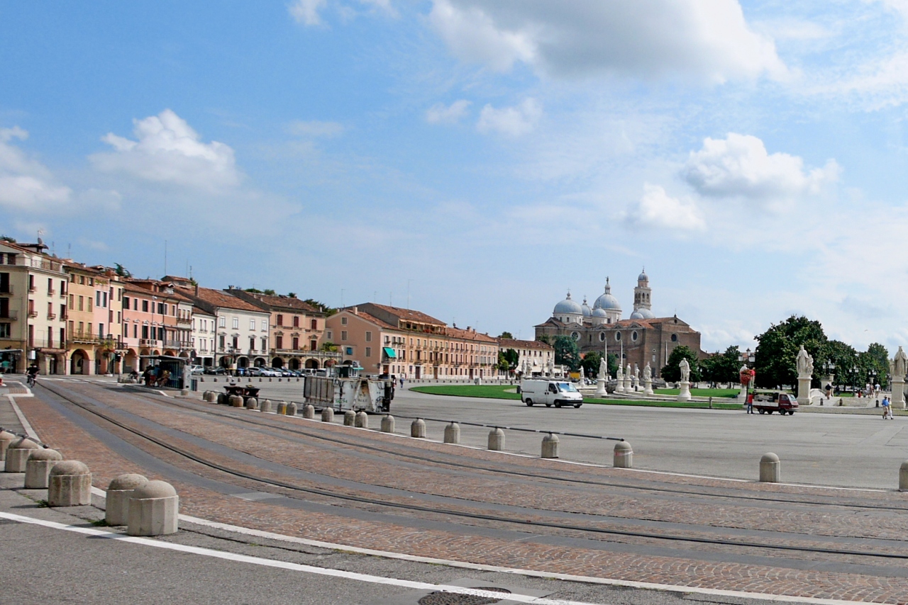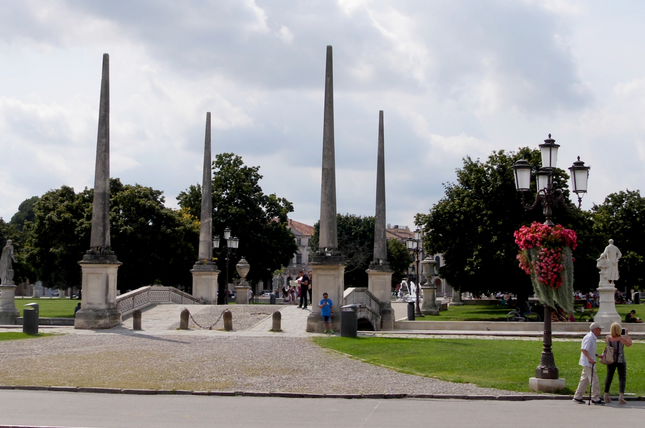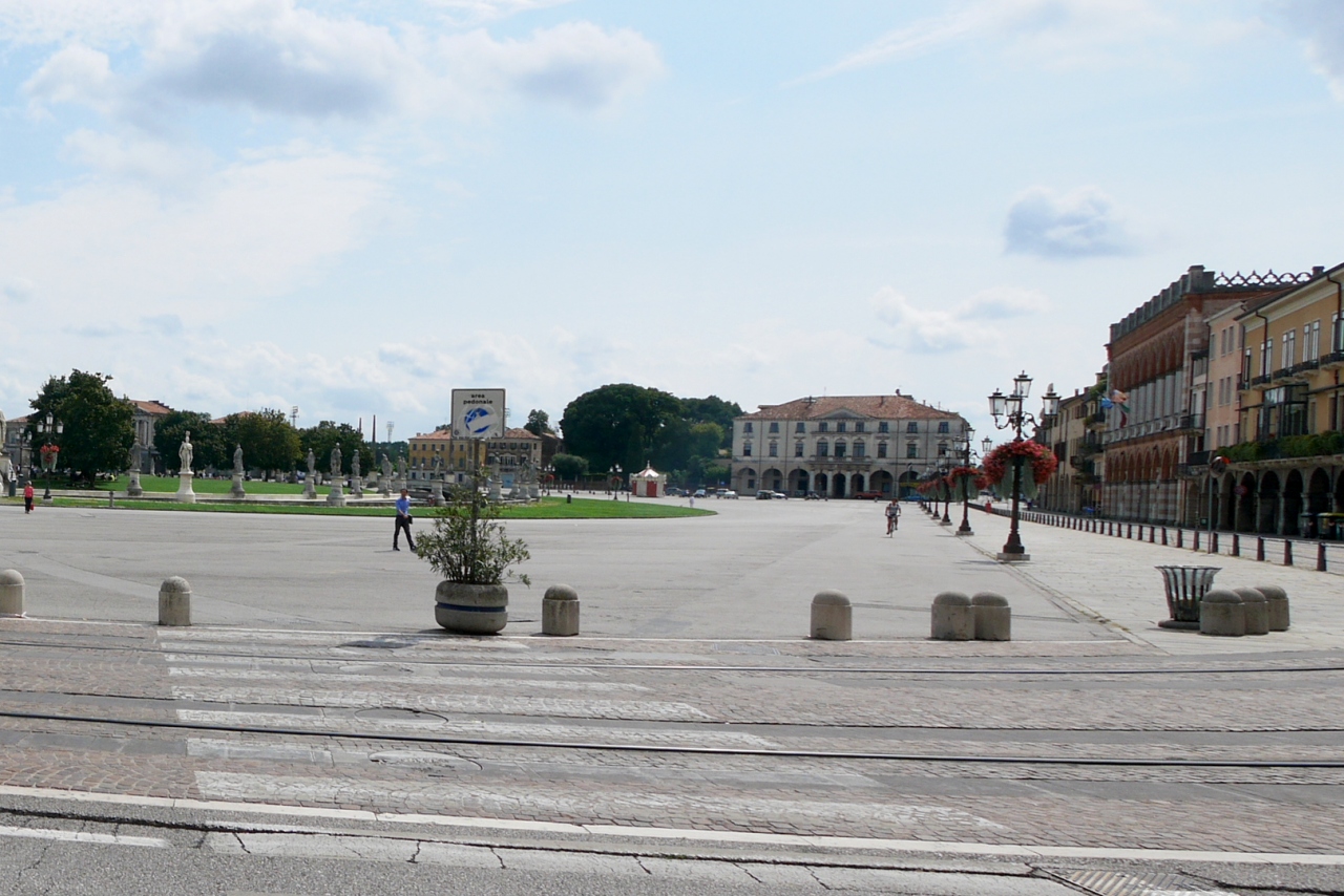 Prato Della Valleだ.かんかんでりでとても暑い日だったので,中に入らず眺めただけ.広大な公園だ.むしろここから見える聖Giustina教会がすばらしい.クチコミの登録がない教会なので近隣のこの箇所に記述.