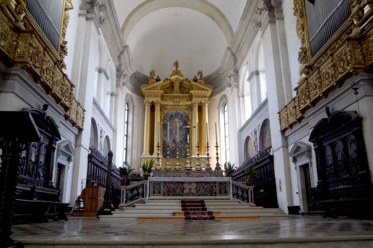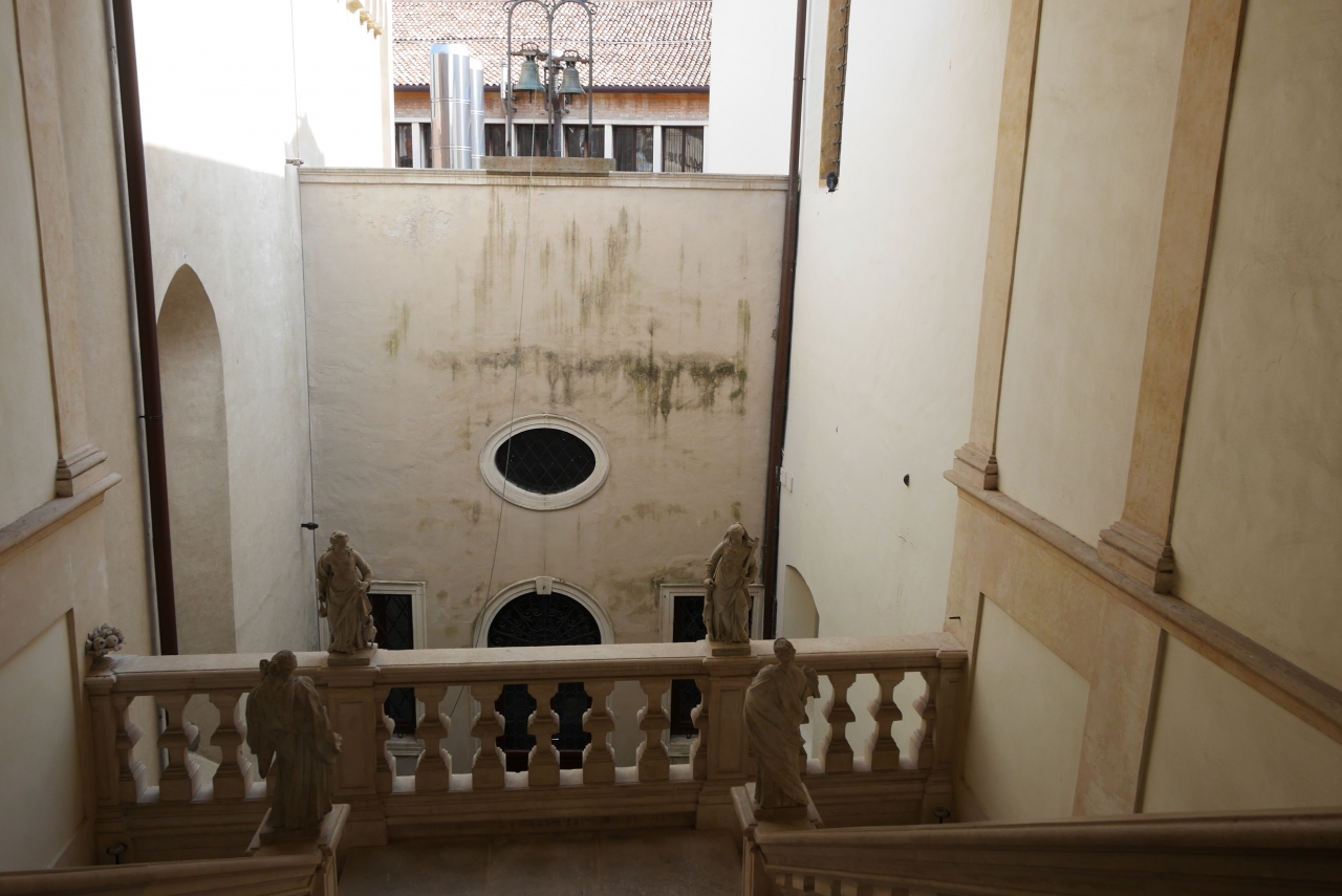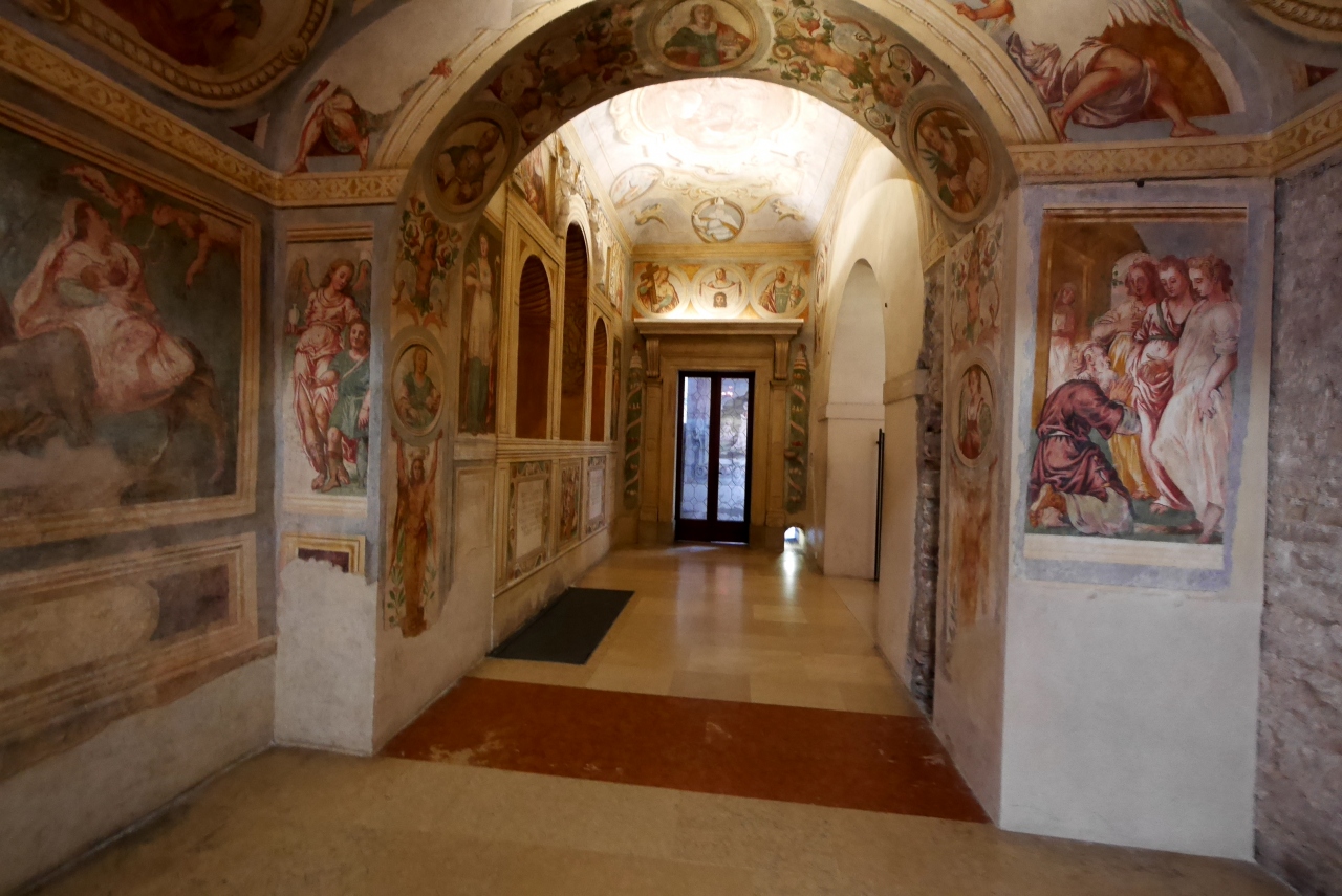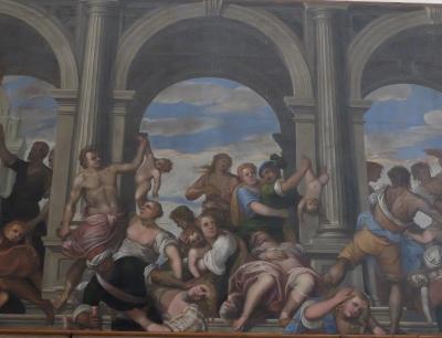 ここにはVeroneseの祭壇画をはじめ,Padovaを象徴するようなルネサンス絵画が残る.中はシンプルで広大な教会だが,装飾のない白壁に巨大な絵がかかる.嬰児虐殺などだ.祭壇画の一つ一つが素晴らしい美術品だ.さらに右の翼には古い教会のものという雰囲気が異なる部分がある.むしろ新しい時代のフレスコ画もなかなか良かった.Padovaでは聖アントニオ聖堂やスクロヴェーニ礼拝堂ばかりが有名だがこの教会もすばらしい!- 旅行時期
