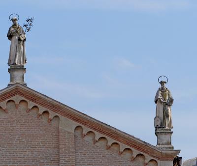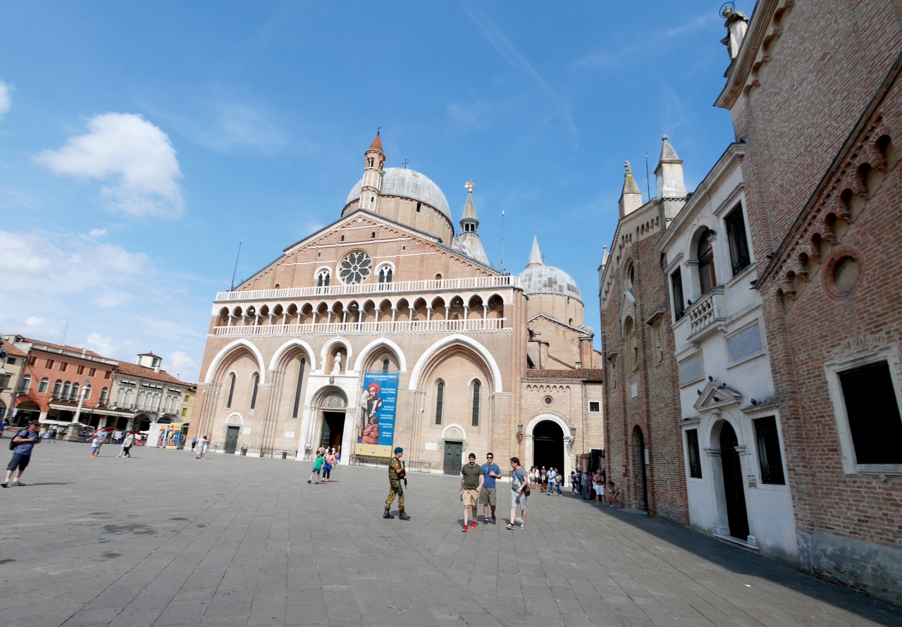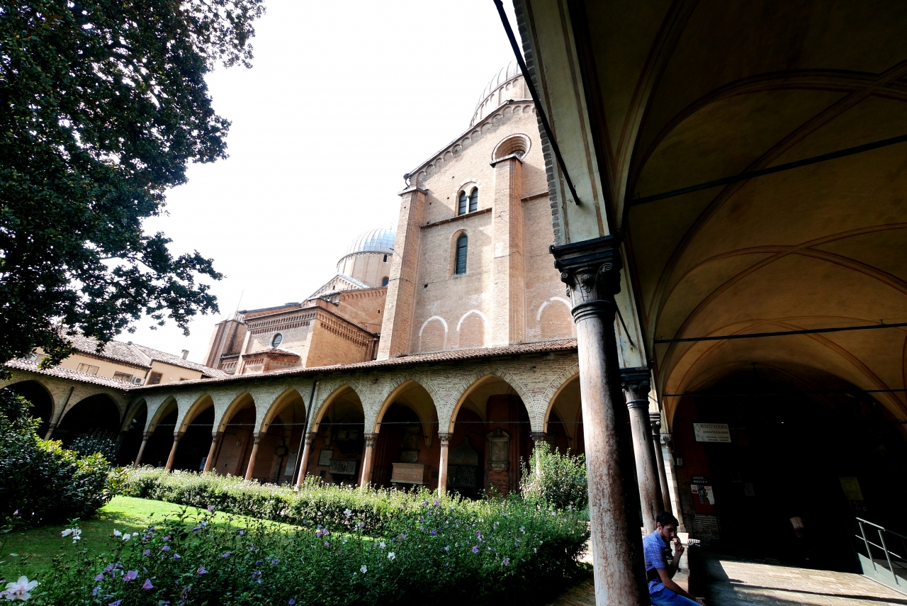 サンアントニオ教会に.フランチェスコ派の聖人だ.中は素晴らしく,信者さんもたくさんいた.円形のクーポラやミナレットのような塔が素晴らしい.しかしカメラでは撮影できないのが残念.回廊や外を写すだけになってしまう.Padovaの主な名所はScrovegni礼拝堂も含め撮影可なので残念.しかし信者さんが多いので仕方ないか.むしろアッシジのフランチェスコ聖堂と同様に,信仰の場としての厳粛さを感じられる場所だ.