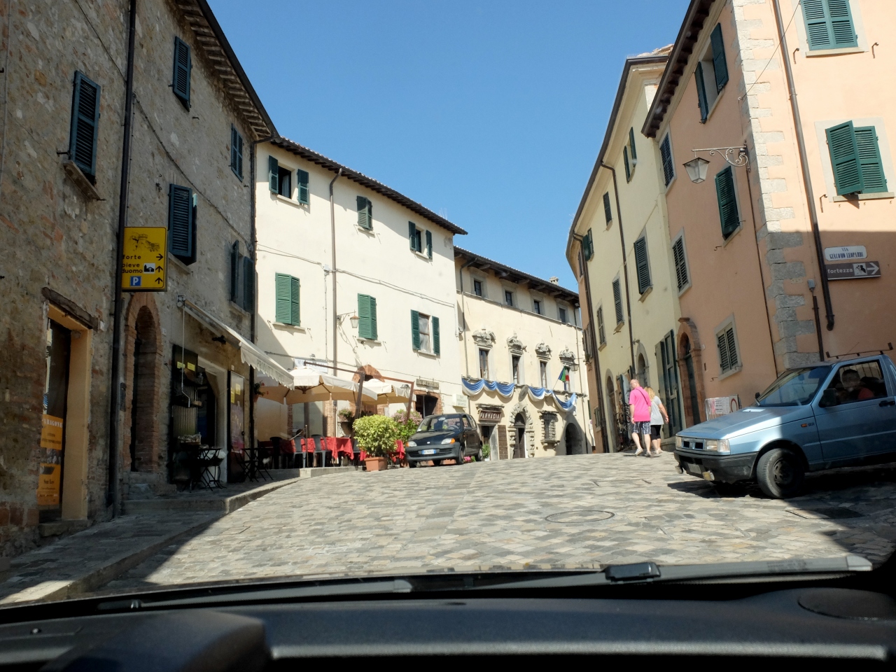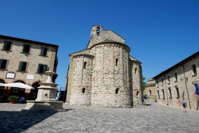 あこがれていた,山上の街San Leo.San Marinoとともに4世紀に築かれた街だ,そしてルパン三世カリオストロの城のモデルになったRocca(要塞)のある街.素晴らしい要塞を仰ぎ見ながら,急峻な山道を街の中に入る.街全体がまるで砦のようだ.Pieve教会(教区教会)のSanta Maria Assunta教会に 石造りの堅固な構造.きっと中世の石造りの教会はこんな感じだったと想像させる.