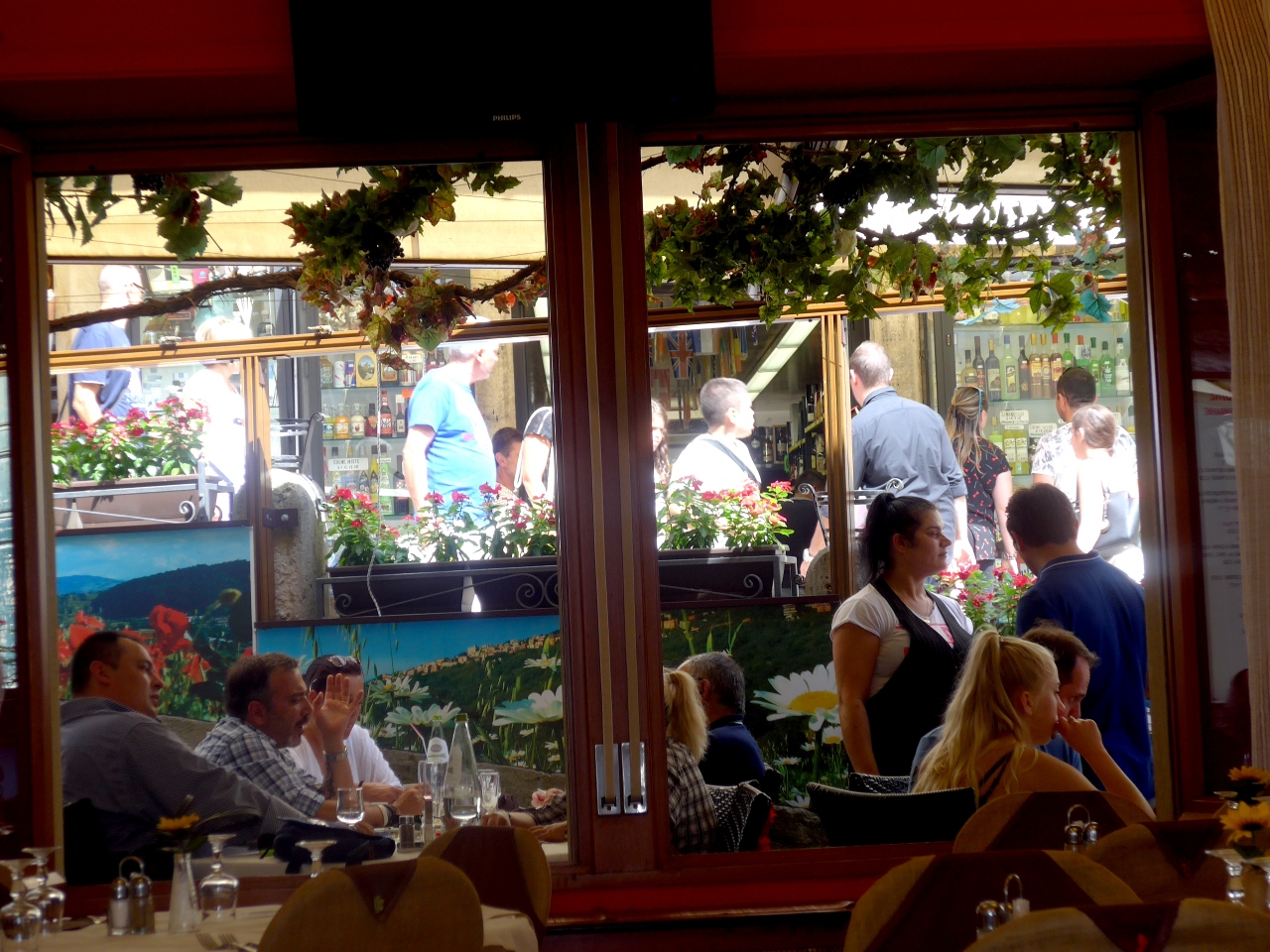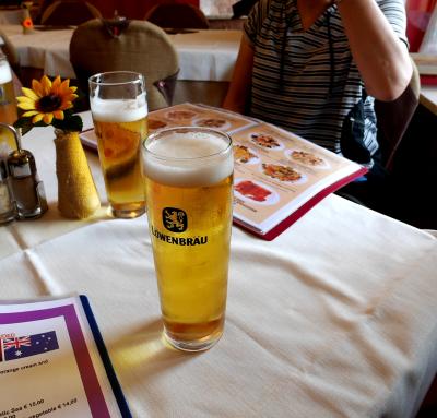 ビールを飲んだりワインを飲んだりしながらのゆっくりの昼食.場所が一等地なので,おいしいかどうかなとおもったが,料金も手ごろで,おいしかった.結構飲んで食べて3人で62.8ユーロと安かった.入ってもいい店だ.窓側からの景色も抜群だ.