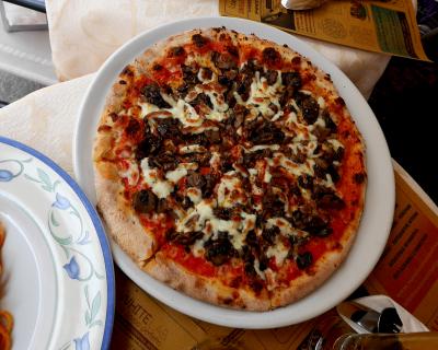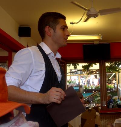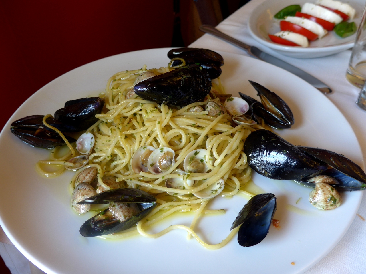 近くのCaffe Antilleに.カジュアルな店だがパスタがとてもおいしかったし,ビールも飲んだが,とても安かった.満足.- 旅行時期