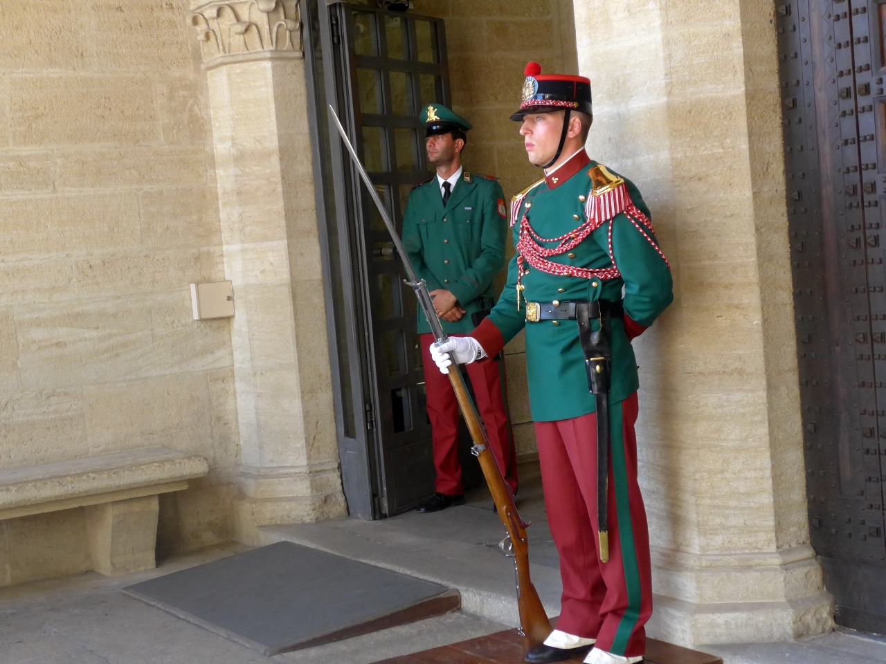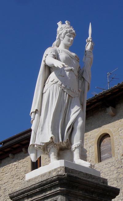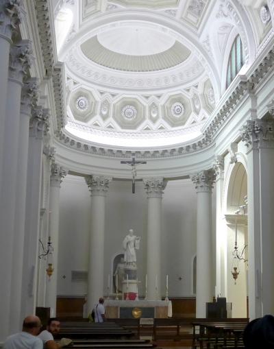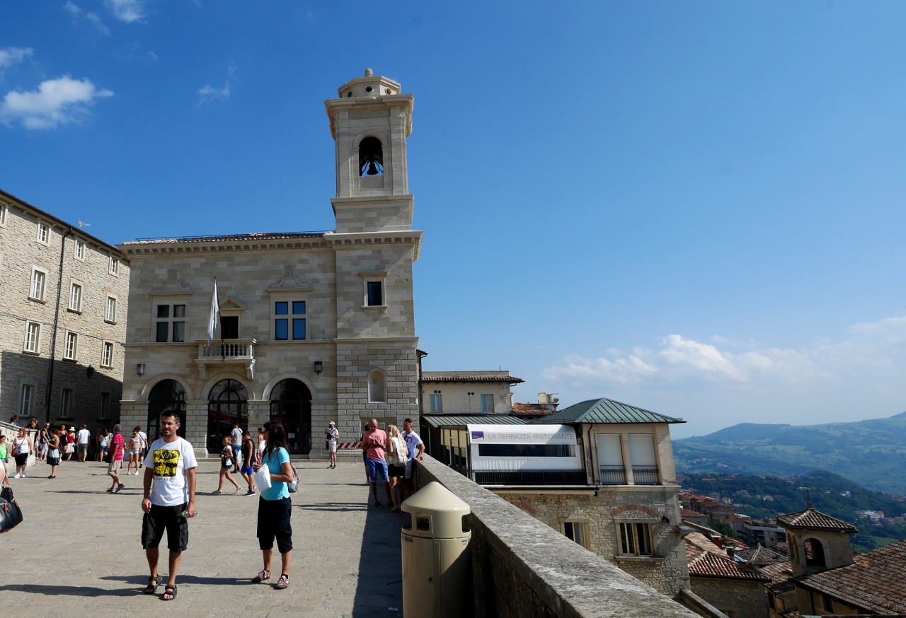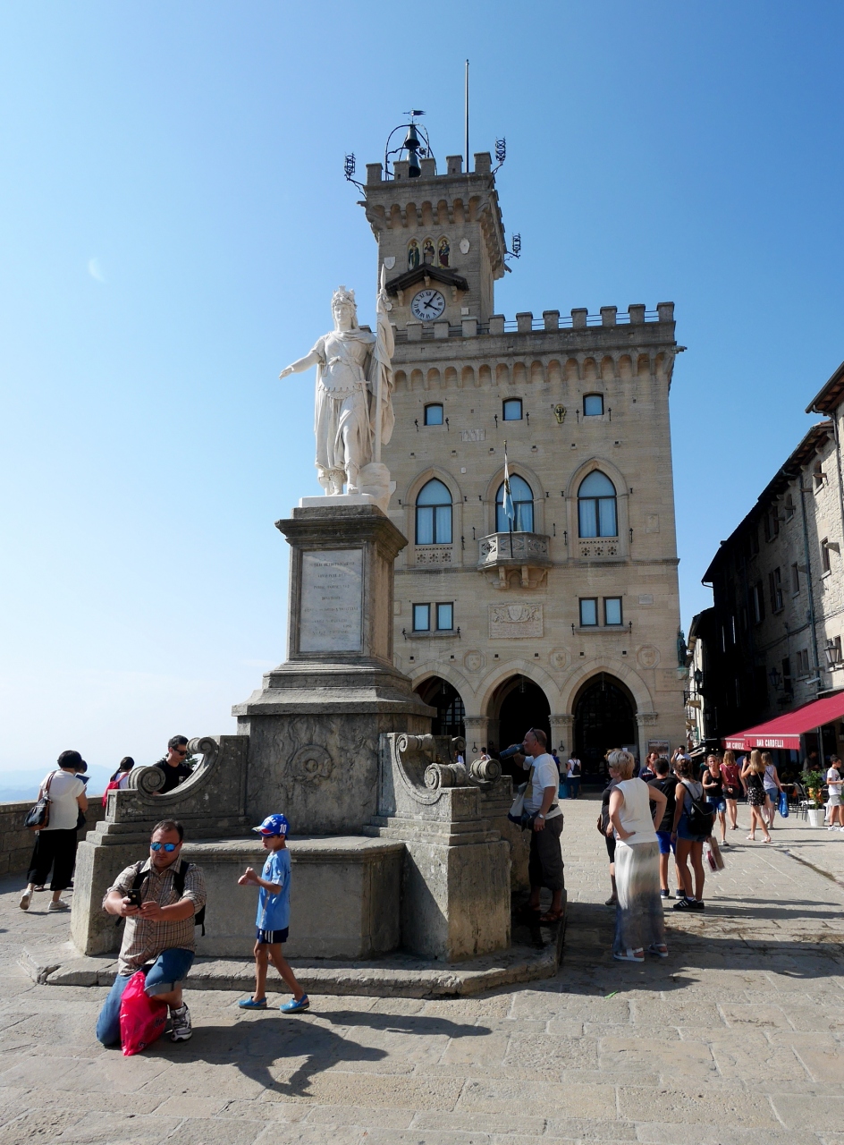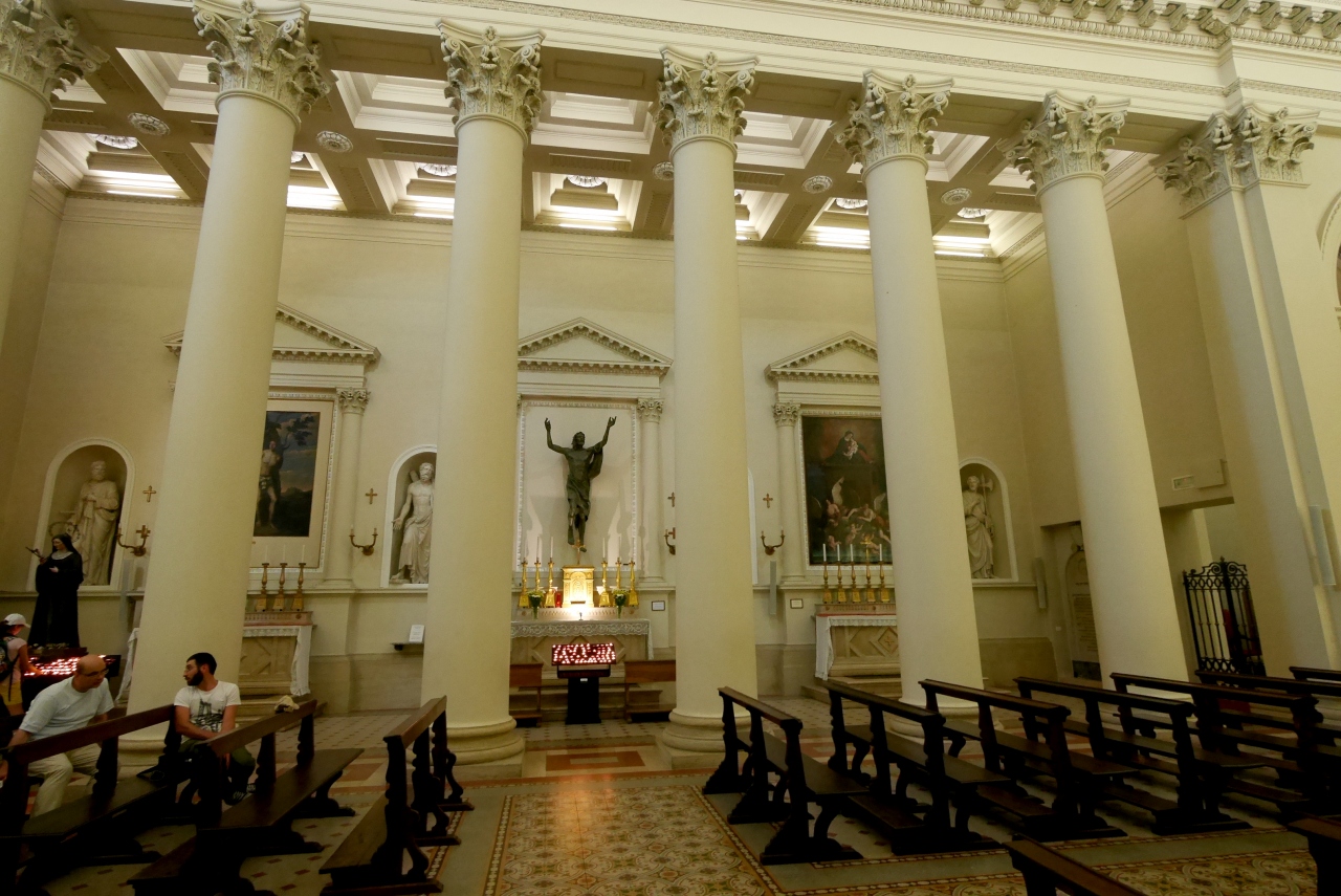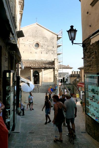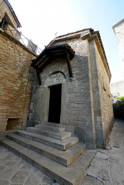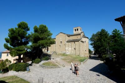サンマリノ大聖堂は1835年から1838年に建造された新古典主義様式のバシリカで、かつての聖堂の跡地に建てられた,まるでギリシャ建築を髣髴とさせる教会.なんだかサンマリノに合わないと思うのは僕だけか.確かにウルビーノの大聖堂も新古典主義だったので無理はないかも.サンマリノ建国の聖人である聖マリーノの遺物をまつった大聖堂.ローマ帝国によるキリスト教の迫害を逃れて来た石工職人マリーノが,ティターノ山の山頂に隠れ住んだのが、この国のはじまり.なので見ていてもいいだろう