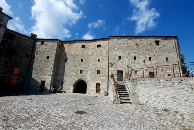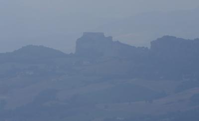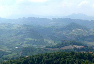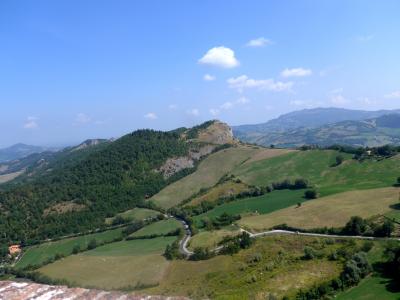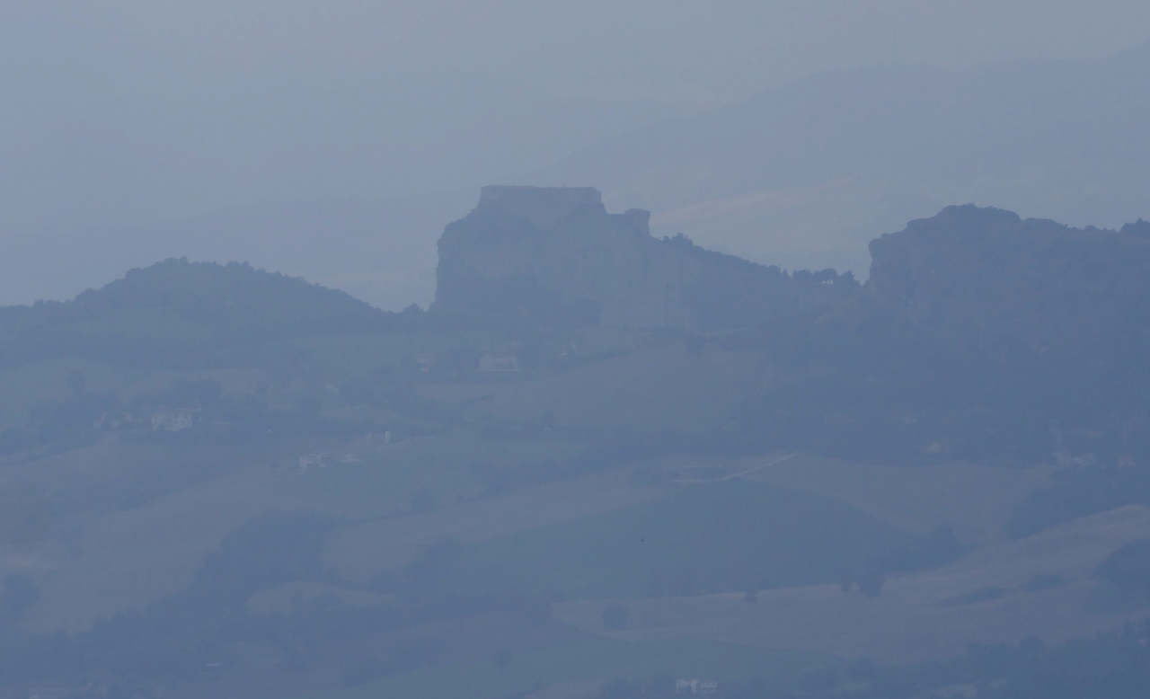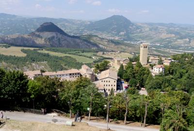 サンレオ城に登る.そこからの絶景に圧倒される.サンマリノがよく見えたし,断崖絶壁がすごい.良くこんなところに城を作ったねえ.すごいねえ.詐欺師カリオストロもこれでは逃げられないね.しかしこの城,ウフィツィの有名な絵のウルビーノ公フェデリーコ・ダ・モンテフェルトロ公がつくったものだ.絶景に圧倒 サンマリノも良く見える.中の展示は牢獄や拷問を中心に,個人的にはあまりよくなかった.『ルパン三世 カリオストロの城』に登場するカリオストロ城のモデルとなったともいわれているので日本でも有名だ