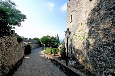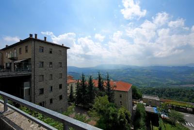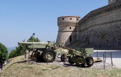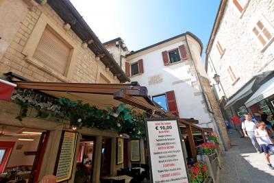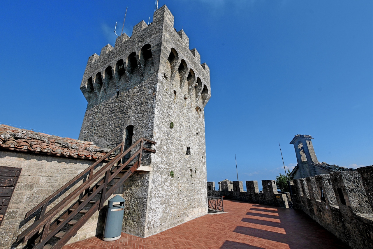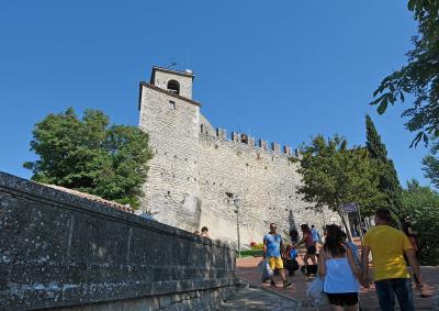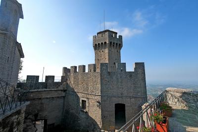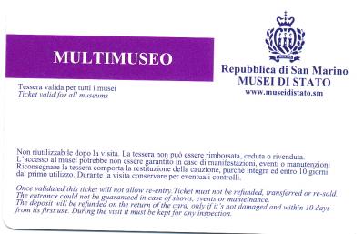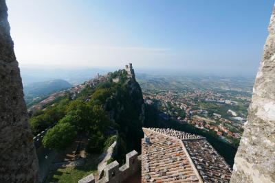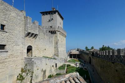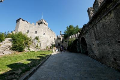 3つの砦は景色が抜群,第一の砦から第二の砦を見るのも,逆に第二の砦から第一の砦を見るのもなかなかいい.第一の砦はLa Rocca o Guaita グアイタの塔という.第二の砦は第二の砦La Cesta o Fratta チェスタの塔 最後に第3の砦 Il Montale も見学する.砦というか塔というか,Rocca,Frattaも同じように迷う言葉だ.サンマリノのハイライトはここ.Multimuseoカードはすべての博物館などに入れる.入場券9ユーロ,カード代1.5ユーロ(返金可能)あわせて10.5ユーロだ.