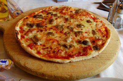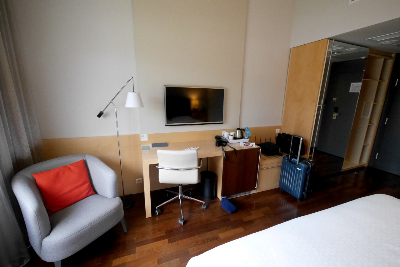 ホテルは1泊84ユーロ(Booking.com)と安いが良い部屋だ.シャワーのみであるがゆっくりと寝られた.お酒も飲んだが比較的安い.朝食も種類が多く満足.4つ星上水準.高速道路のインターそばなので,レンタカー使用者にはとても便利だが,町中には5kmある.