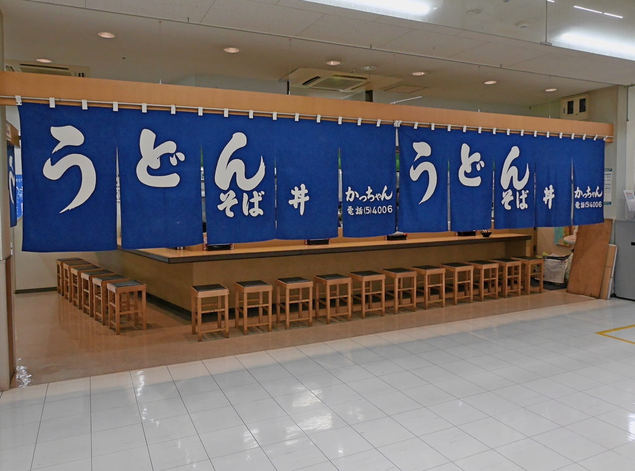イオン壱岐店内に出店している,うどん「かっちゃん」.以前にも牛丼を食べたがなかなか安いしおいしい.今回はごぼ天うどんだったが関西風のダシにしこしこうどんがあった.昼食に食べる店が多くない壱岐では貴重な店だ.おすすめ