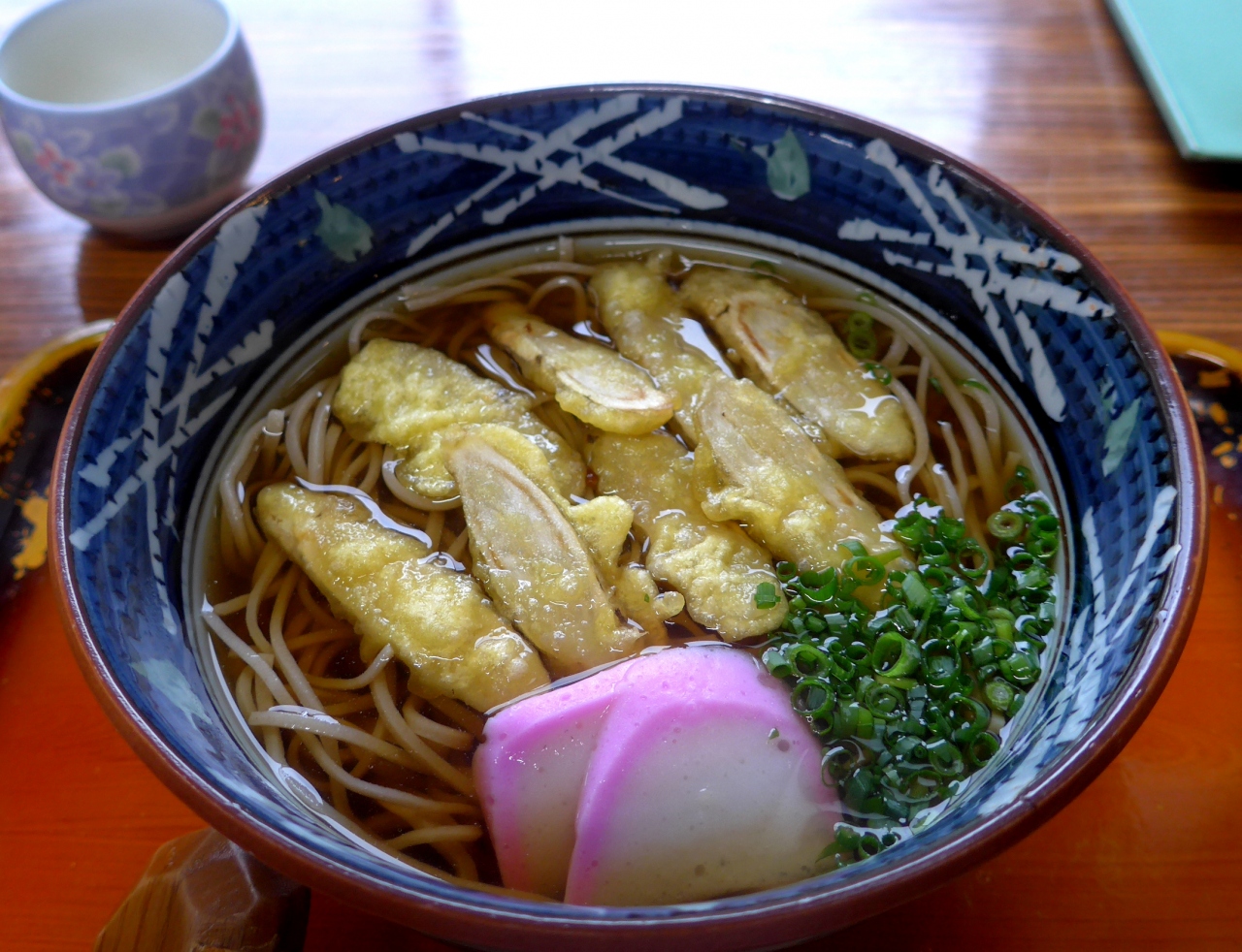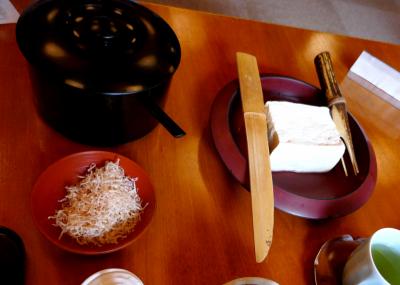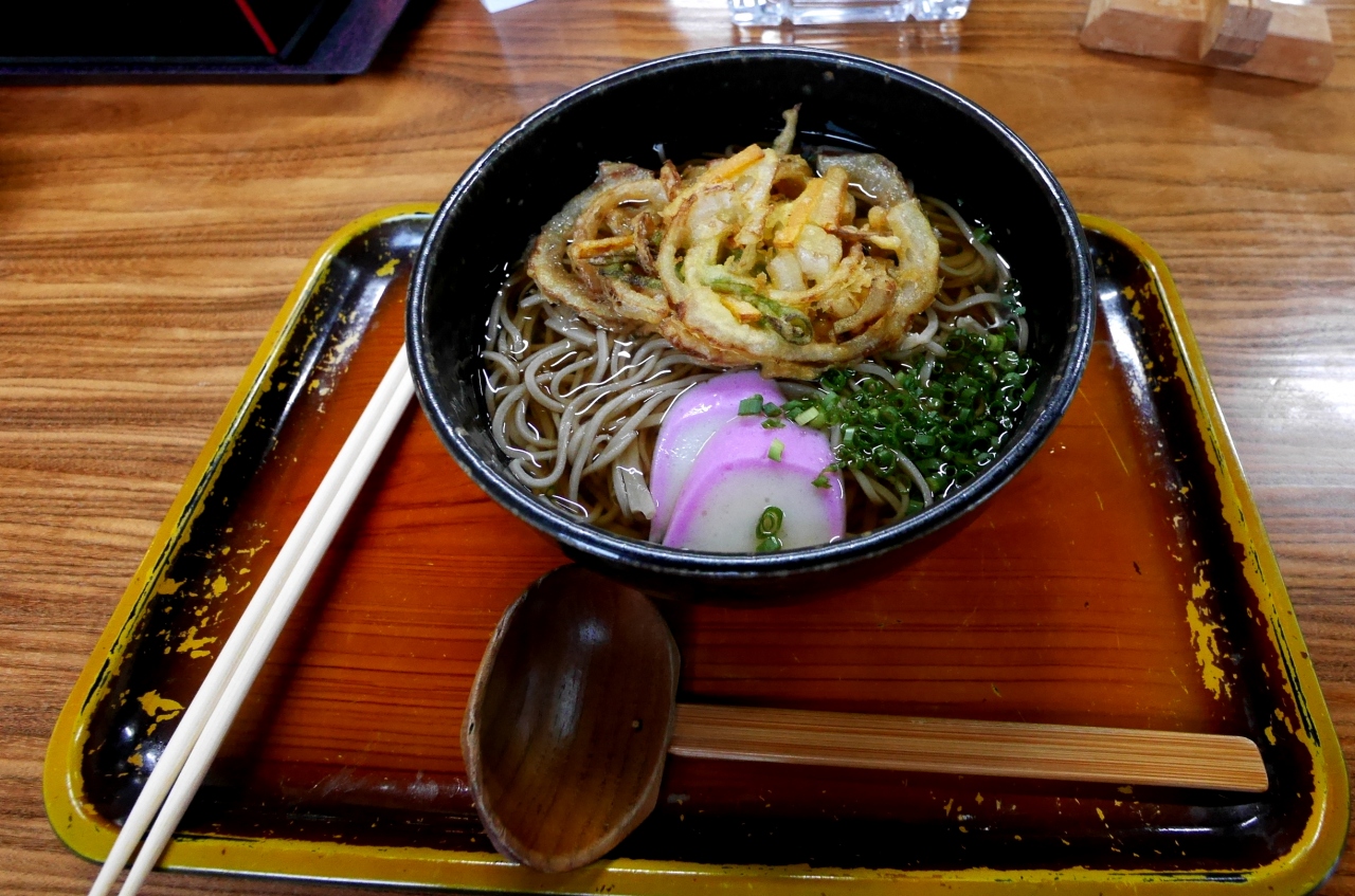 ここの付属食堂 以前来たときに食べなかったので今回は昼食とした.私はてんぷらそば.同僚はごぼてんそば 特別に別皿で鬼の目もちもたのんだ.普通のお餅だが焼いた香ばしさがおいしい,ちからそばにもなるのでなかなかいいね.しかしここの仏像は平安の特徴を示す阿弥陀様だ.200円払っても見る価値あり
