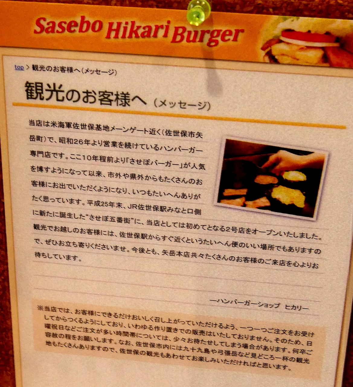 ハンバーガーショップ・ヒカリ させぼ五番街店へ.新しくできた店だ.駅から3分で行ける.当然スペシャルバーガー600円+ポテトセット360円+コーヒー100円 いろいろな味がしておいしかった.日本らしく繊細な味と思った.ケチャップとマスタードでごまかしていないのがいい 有名になる味だ.