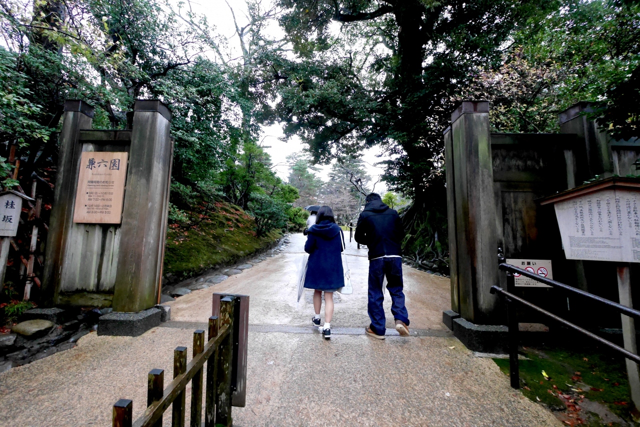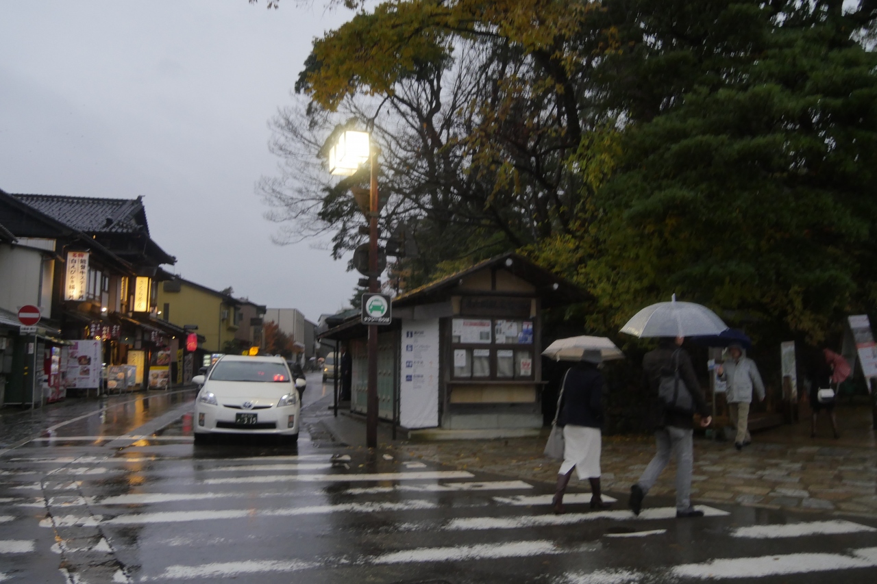四季物語秋の段と銘打っている.石川門より入り,三の丸広場,橋爪門,二の丸広場,本丸園地から三十間長屋へと歩く.紅葉している木々はそれほど多くなかったが,ライトアップされた城は美しかった.坂を下りて坂を玉泉院丸庭園に.ここから見上げる城も美しい.雨の日だったが,空いていて非常に良かった.雨のみずみずしさに余計ライトアップが映える.しかし玉泉院丸口からでるとすぐには交通機関がない.やっと市役所前にまで歩きタクシーを拾った.合同庁舎前から香林坊へ歩いたほうがいいと思う.