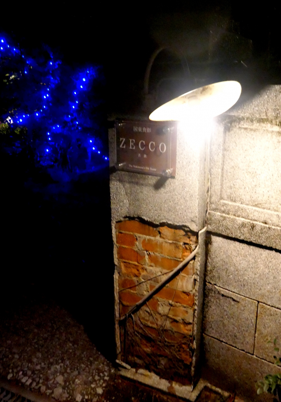 古民家を改造した店,もと有名な,大分空港誘致の功労者,西村英一氏の選挙事務所だったところ.洋食が出てきそうなたたずまいだったが,純和食.それもとても質がいい食事だった.素材の味を生かしているうえに新鮮でおいしい.刺身からすっぽん鍋,イセエビからステーキに至るまでおいしかった.途中からは酔っぱらってしまい,デザートなど写真に撮らなかったのが惜しい.ご飯も釜飯で会ったような気がする(酔っぱらっていて記憶が定かでない)Zeccoという店,機会があったらもう一度行ってみたい.