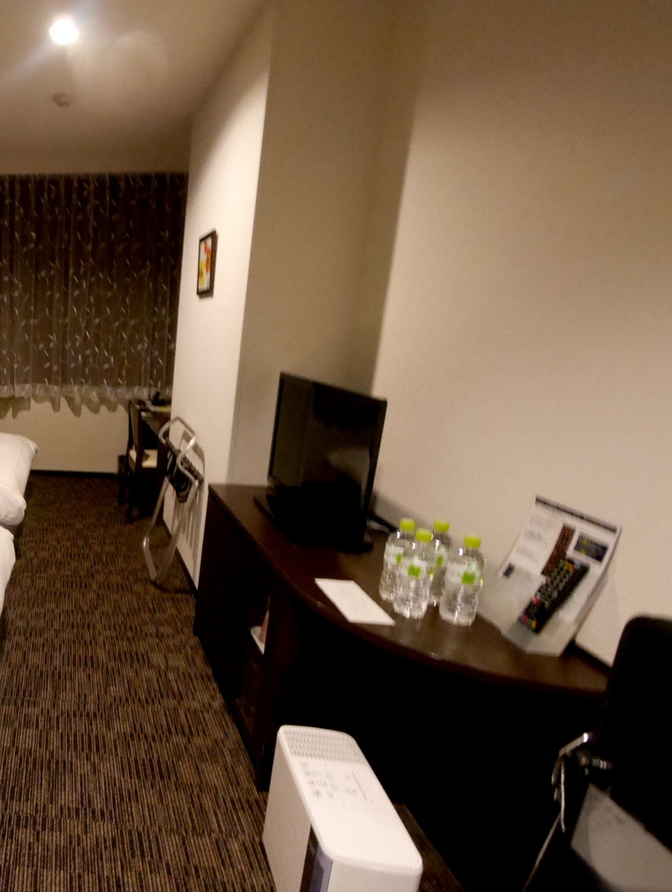 特別室のようでだだっぴろかった.ベッドは少し柔らかいがまあまあ.他に大浴場があるようだが仕事の関係上行けなかった.9月に台風で予約キャンセルしたホテル.夕食は食べていない.朝食は並みだった.このあたりホテル少ないので,ここに泊まってもいいかな.私は前に宿泊したヴィラくにさきの方がよかったと思う