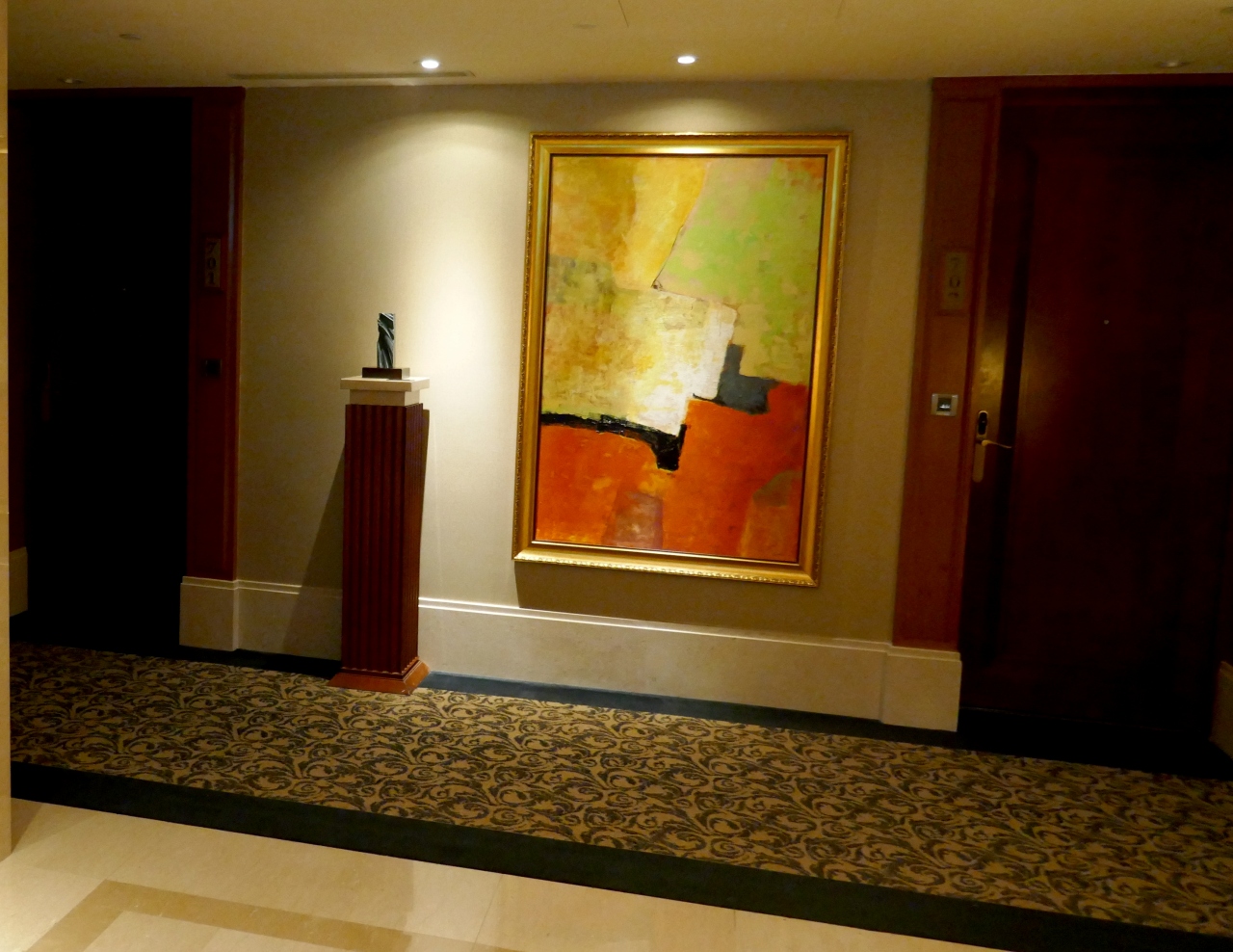 今回の大阪はとんぼ返り 朝0705発の便で帰らなければならないので大変だ.そのためリーガロイヤルホテルでの仕事だったが,宿泊は大阪空港ホテルにしてもらった.部屋はANAホテルのようなトーン.静かだった.また風呂もシティホテル標準の大きさで入りやすかった.ベッドも固め.朝早いプレッシャーがあったが,そこそこ眠れた.このホテルは便利だしおもったより雰囲気が良く,ビジネスホテルぽくなかった.これから時々使おう.特に朝が楽.部屋から10分以内にセキュリティーを通れる.