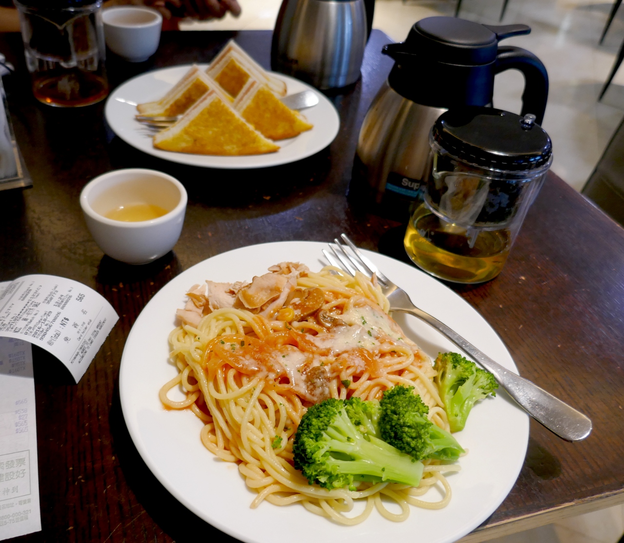 私はスパゲティ 台湾茶の一番高いのを頼んだ.スパゲティはややうどん風だったが,台湾茶はすごくおいしかった.(銘柄は忘れてしまった)