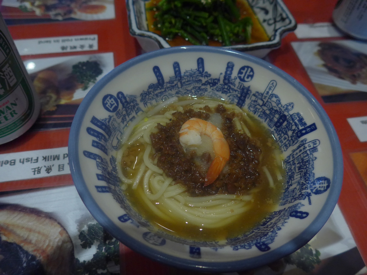 やっぱり台南なら度小月の担仔麺!度小月本店(原始店)に,ここでビールと,もう一つの台南名物蝦捲もたべた.小さい器だが,安くてとてもおいしい!全部で4人で790元 一人700円くらい.