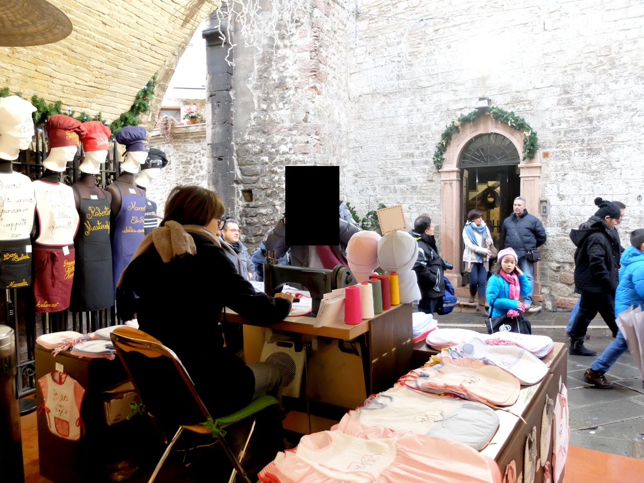 教会の広場の景色がいい サンタキアーラ通りにある刺繍の店が面白い