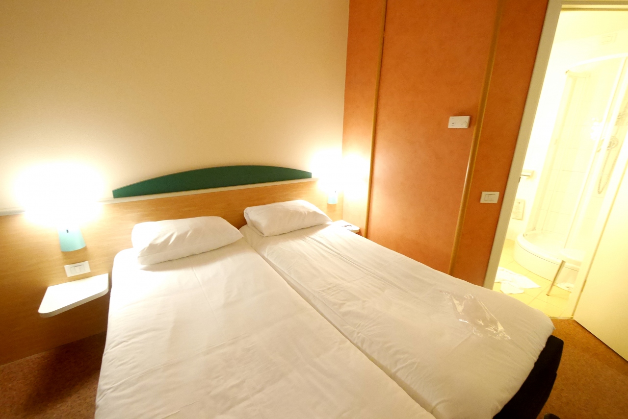 1泊シングルで 7954円と安い.空港から距離は近いのだがシャトルはない.タクシーだと特に空港行きはおおきく一方通行を回り道するので15ユーロくらいかかる.市内からはタクシー25ユーロなのでそれよりはましだし,安いのが魅力.中はコンパクトだが必要な設備は十分.朝食は朝早いので食べなかった.空港早発なら宿泊していいホテルだ