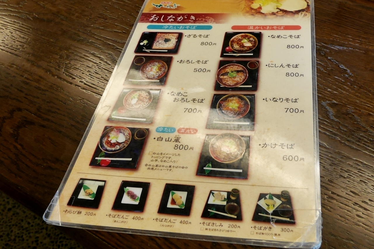 道の駅一向一揆の里のなかにある.冷たいそばにした.山芋なめこが入って白山をイメージしていると おいしかったがもう少しボリュームほしい.2人前食べてちょうどいいかも.それ以外にもにしんそば,なめこおろしそばなどがある.