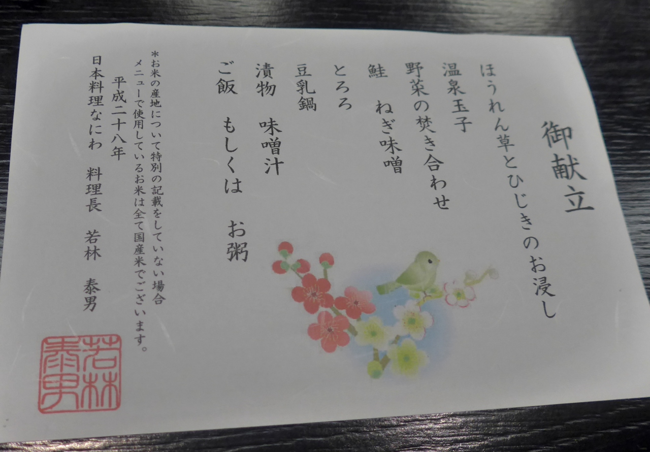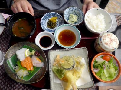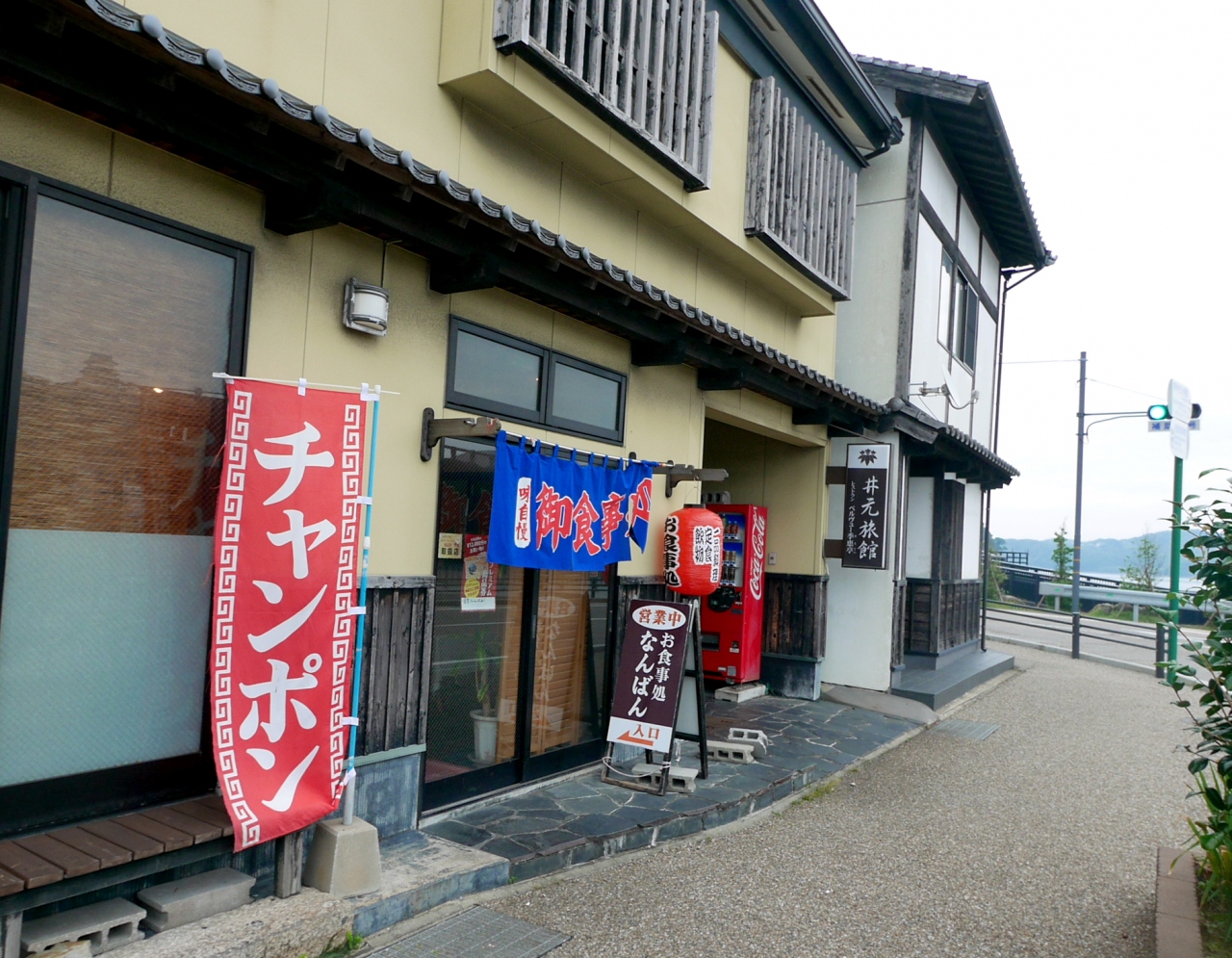 この旅館の付属食堂「なんばん」で昼食.地元の人が入るような食堂.平凡な味だが,けっこうおいしい.旅館の食堂で,素泊まりで泊まってここで食べるようだが,この味ならここに宿泊しても案外いいかもしれない.昼間は観光客以外が定食などを食べにくるようだ.