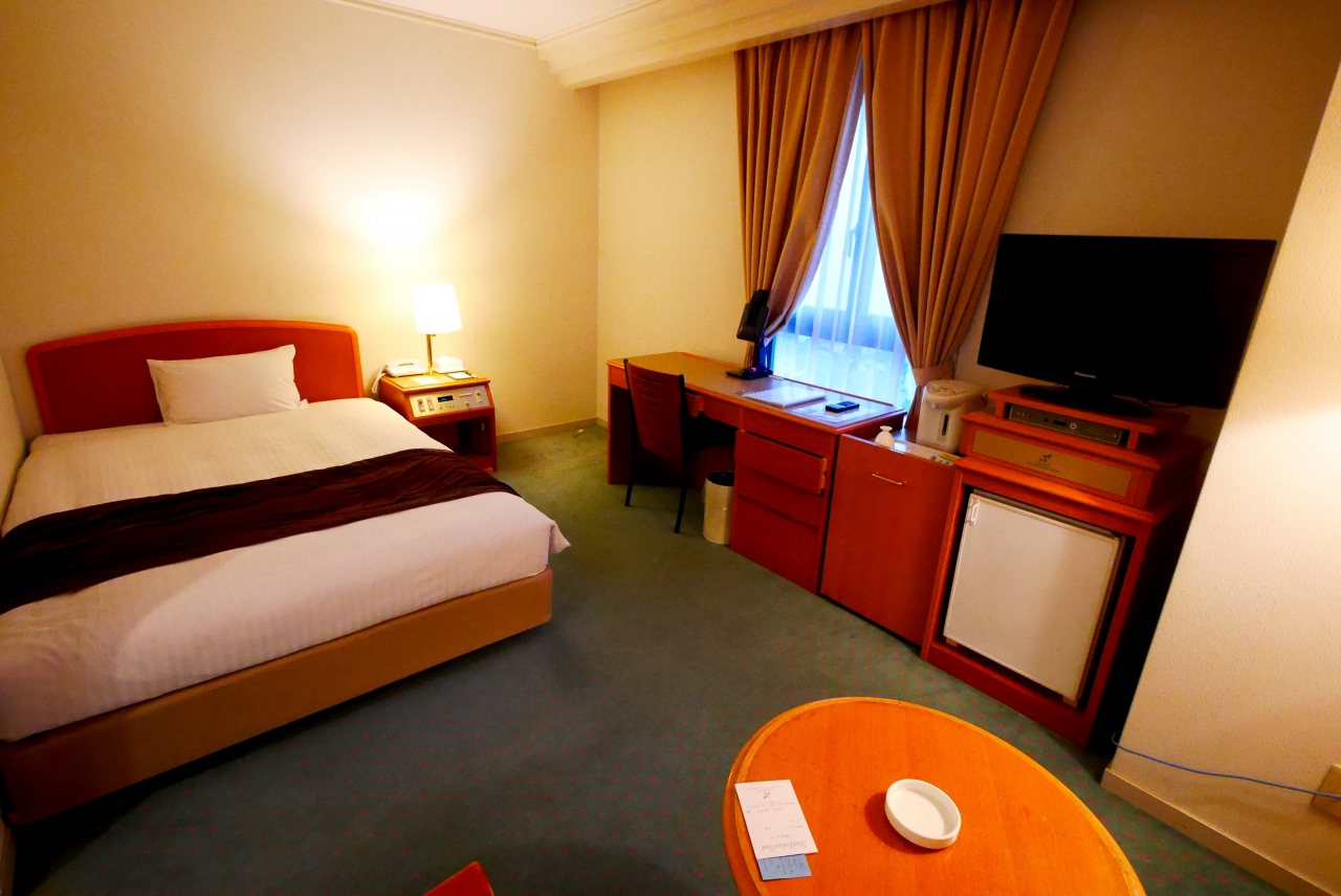 1泊朝食付きで7290円 平日ではあるが安い.部屋はスーペリアシングルで広くてとても良い.朝食もバイキングではなかったが手が込んでいる感じで割とよかった.夕食はホテルの中の和食の桜華という店で,定食とサラダやもずく,アジの刺身などを食べたが全部で6930円と安かった.空港までの送迎もあり,おすすめのホテル.大村で宿泊しなければならない時はこのホテルに決めた.