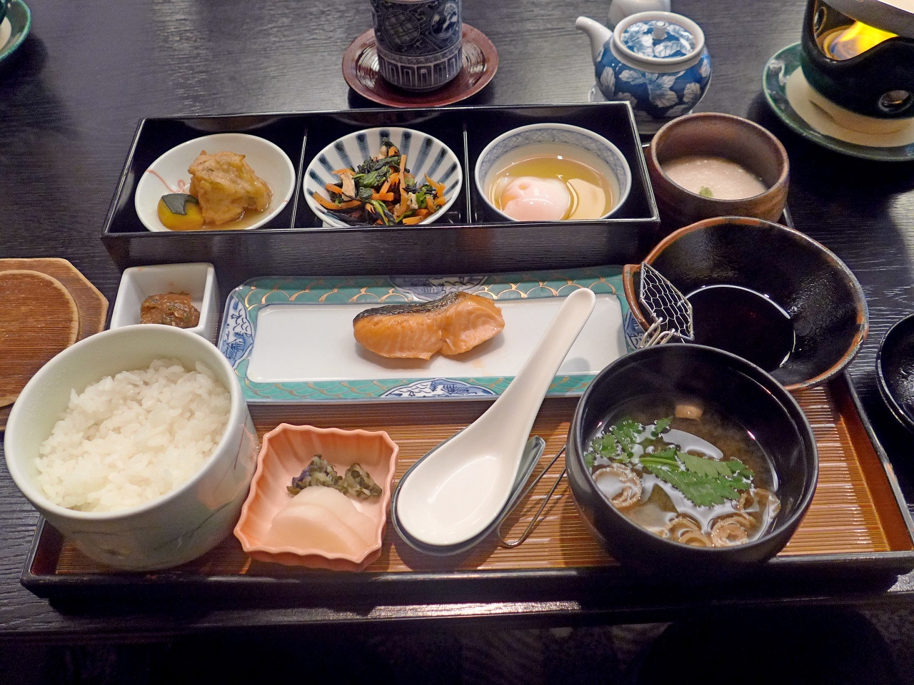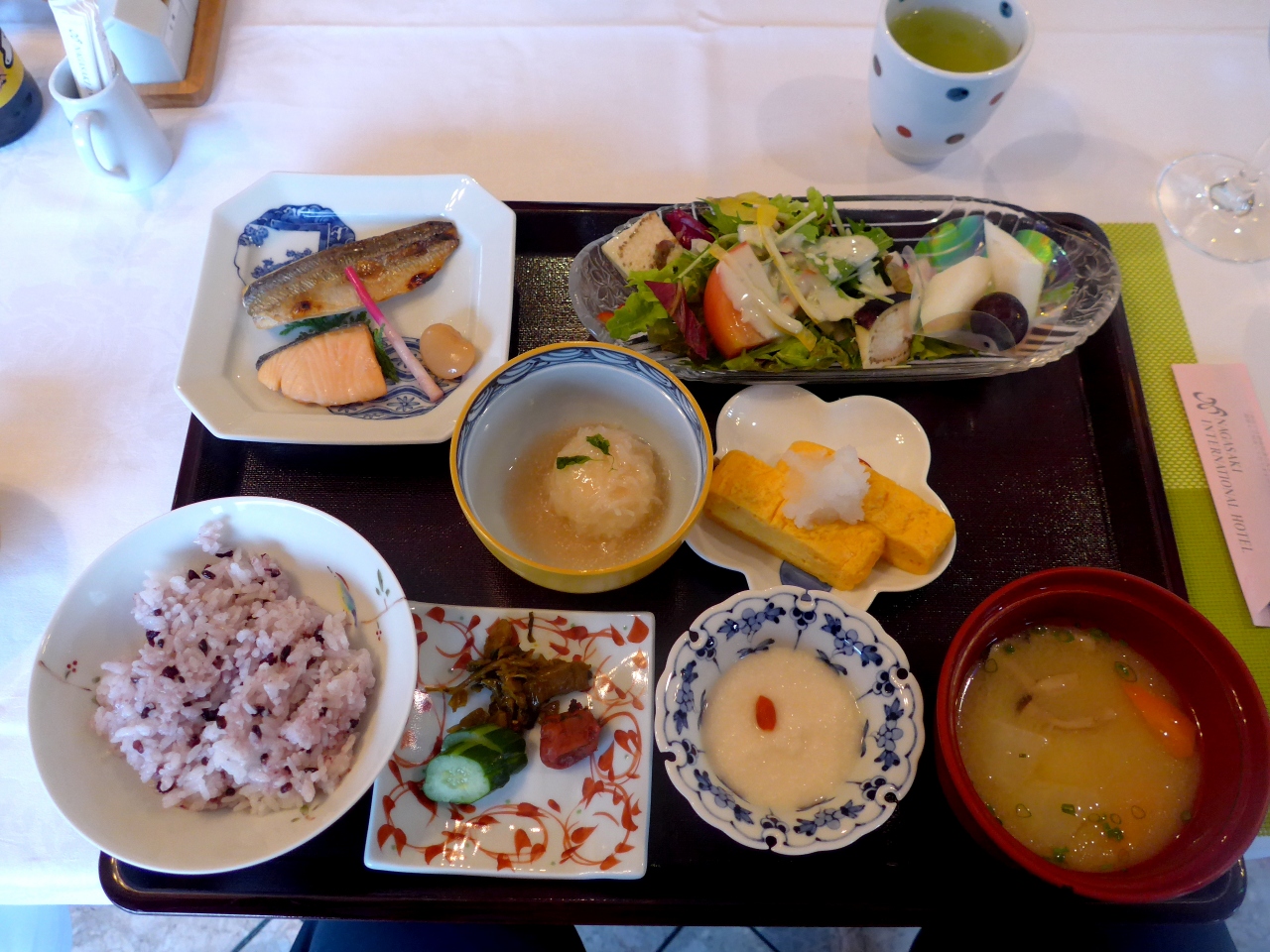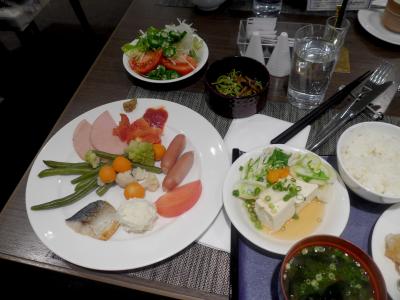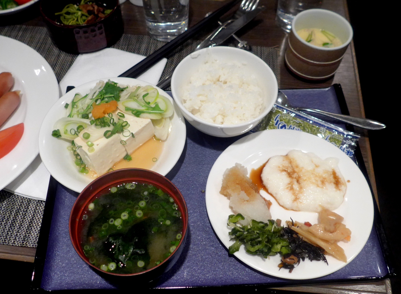 朝食は日本料理なにわの和朝食にした.この食事結構良かった!おばんざいのように小鉢がならぶ.とろろもある.おもしろかったのは豆乳鍋.たんぱくが固まって湯葉のようになる.だし汁付けて美味しい.ここは和朝食にして正解だった.泊まっていいホテル- 旅行時期