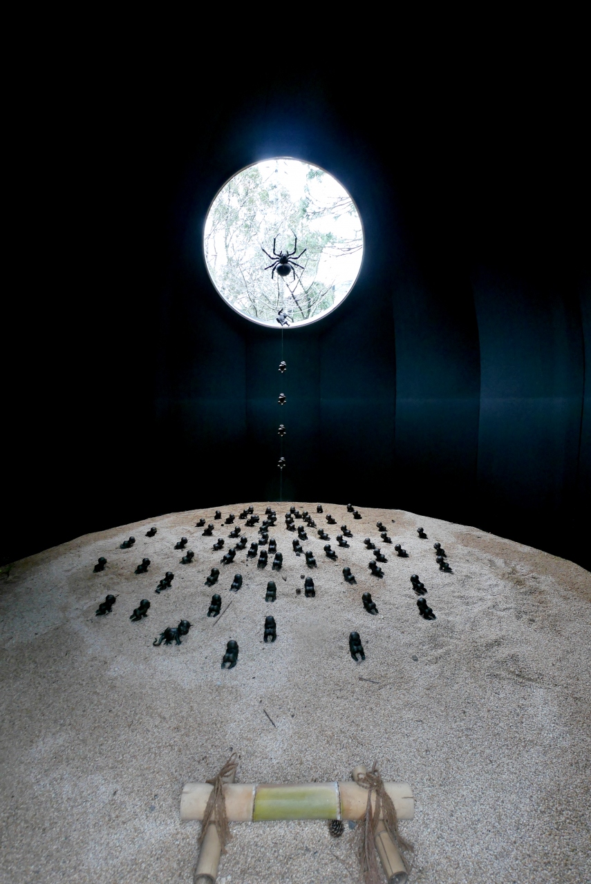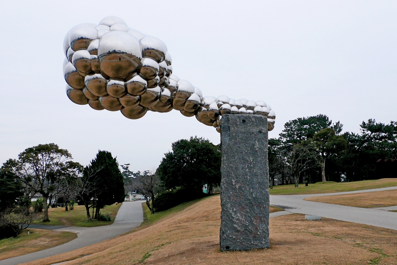 残念ながらおめあての石炭記念館は定休日.公園の中の常盤神社でこの湖が元禄時代に灌漑用に作られたことを知る.切腹寸前に大雨が降るというまるでドラマのような話だ.またここは現代彫刻の野外展示が行われている.現代風の意味の分からない,彫刻というよりオブジェの様だったが,蜘蛛のいとのようにわかりやすいものもあった.この蟻の城はまるでジブリのアニメに出てきそうな形をしている.なかなかいい公園なので晴れた日には楽しめる公園だ.地元の人でなく観光客にも面白いと思う