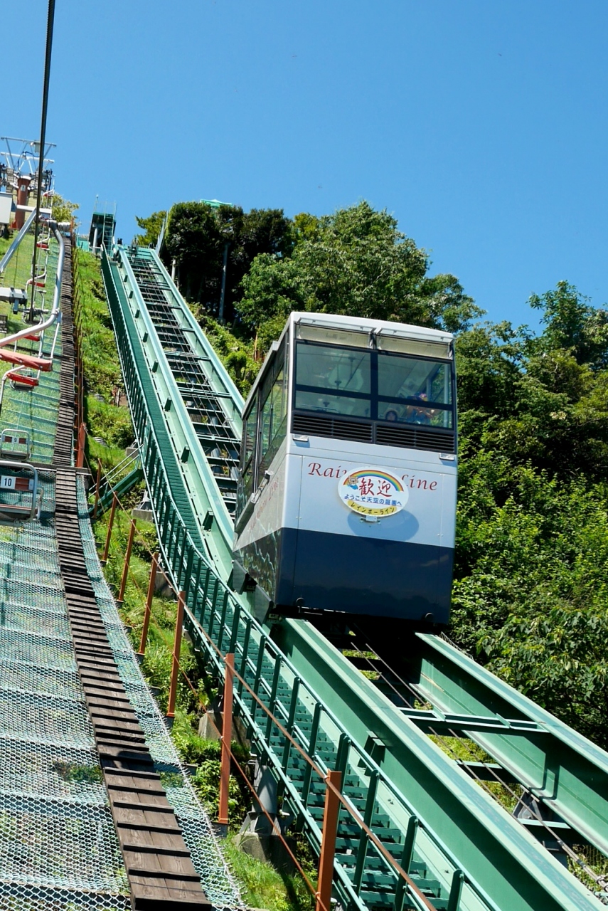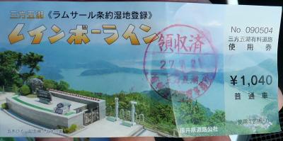 レインボーライン1040円 リフトとケーブル800円と非常に高いし,また山頂は日中友好の鐘やら,恋人の聖地やら,五木ひろしの歌碑などすごく俗っぽい.観光地然としたところだが,でも景色は最高だ.三方五湖と海の色の違いも良くわかる.晴れたら行くべきところだ