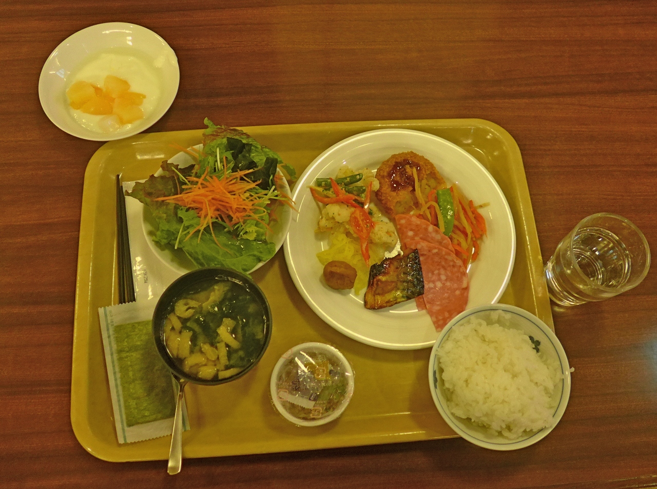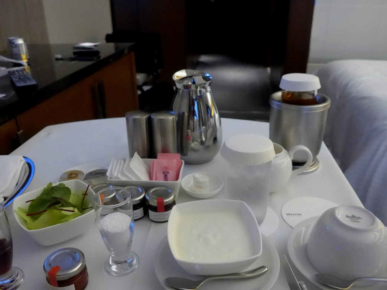 ウェスティンホテルは何回か宿泊しているが,部屋のつくりはいい.シャワーと浴室が別のところも最高.それに寝やすい.0800仙台空港発なので0700からの朝食では間に合わない.今回特筆すべきなのはルームサービスを朝食券+1030円で行ってくれるところ.0700から朝食なので,0630にお願いした.ルームサービスとしても豪華,オムレツ,ハム,茹で野菜,トマト,マリネ,果物,アップルジュース,ヨーグルト,サラダ,コーヒー,パンと.十分満足できたが食べるのに時間が厳しかった.せめて0615からならば,朝一番の飛行機や新幹線の人も食事にできる.おいしかった.