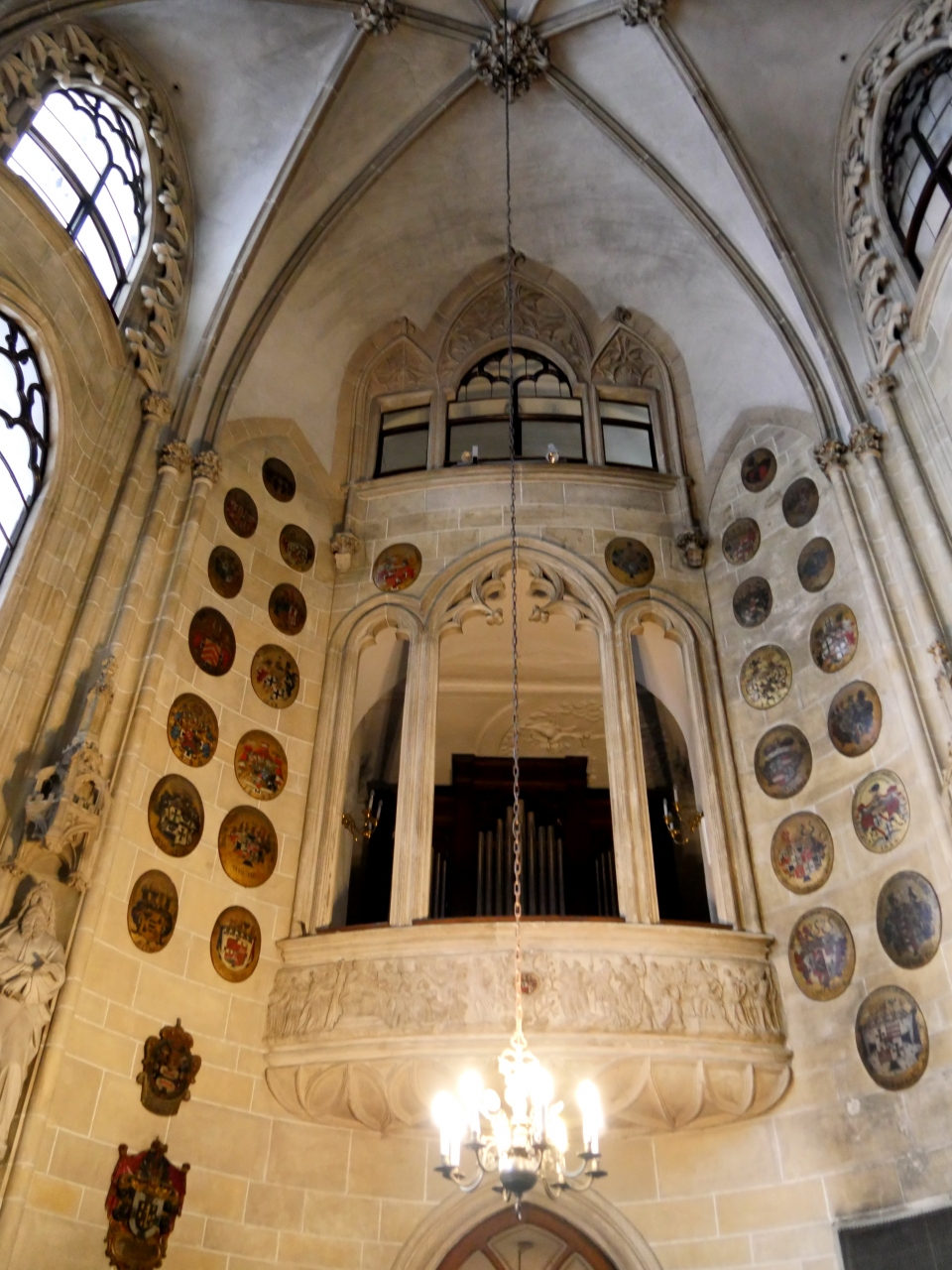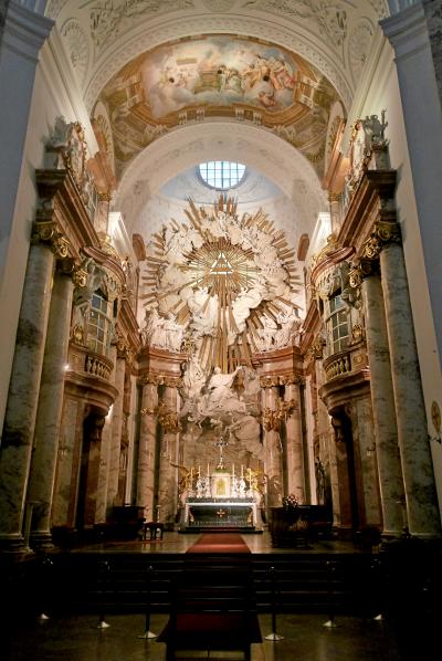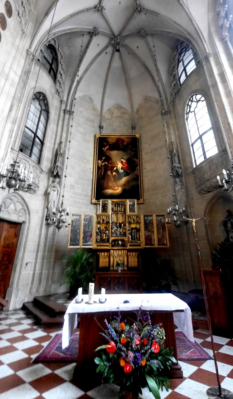 狭いがちょっと変わった教会.騎士団の紋章が飾られているのが特徴的.1395年建立.ドイツ騎士団は1190年に第3回十字軍の際に設立.Singerstrasseには1204年~1206年に定住.主祭壇に向かって左側の壁には80以上の紋章.これは教会内で刀礼を受けた騎士が自分の紋章を飾った習慣による.表通りから,普通の建物の中に入るつもりで,ドアを開けると教会がある.シュテファン寺院のそばなので見逃さずによるとよい.