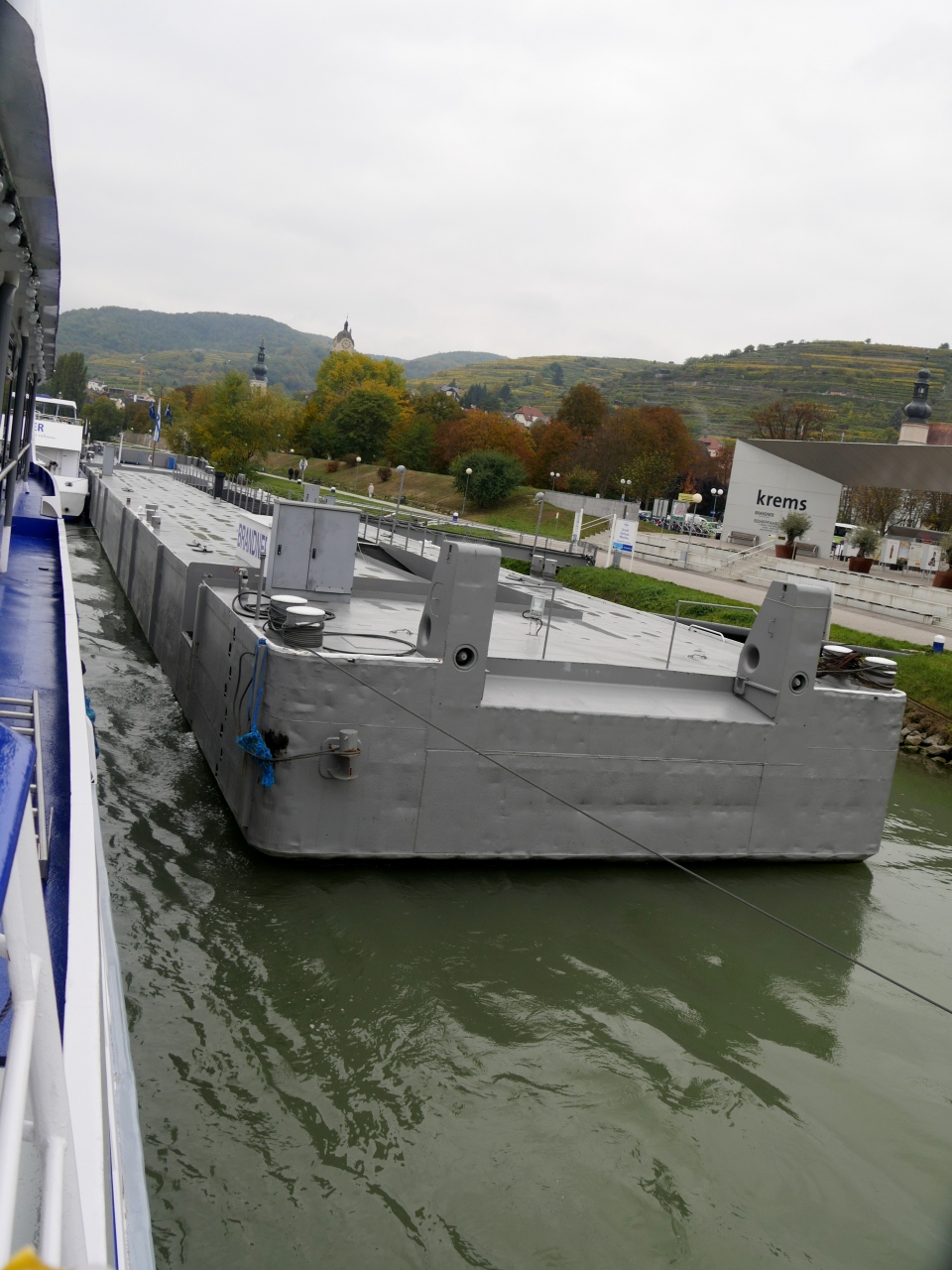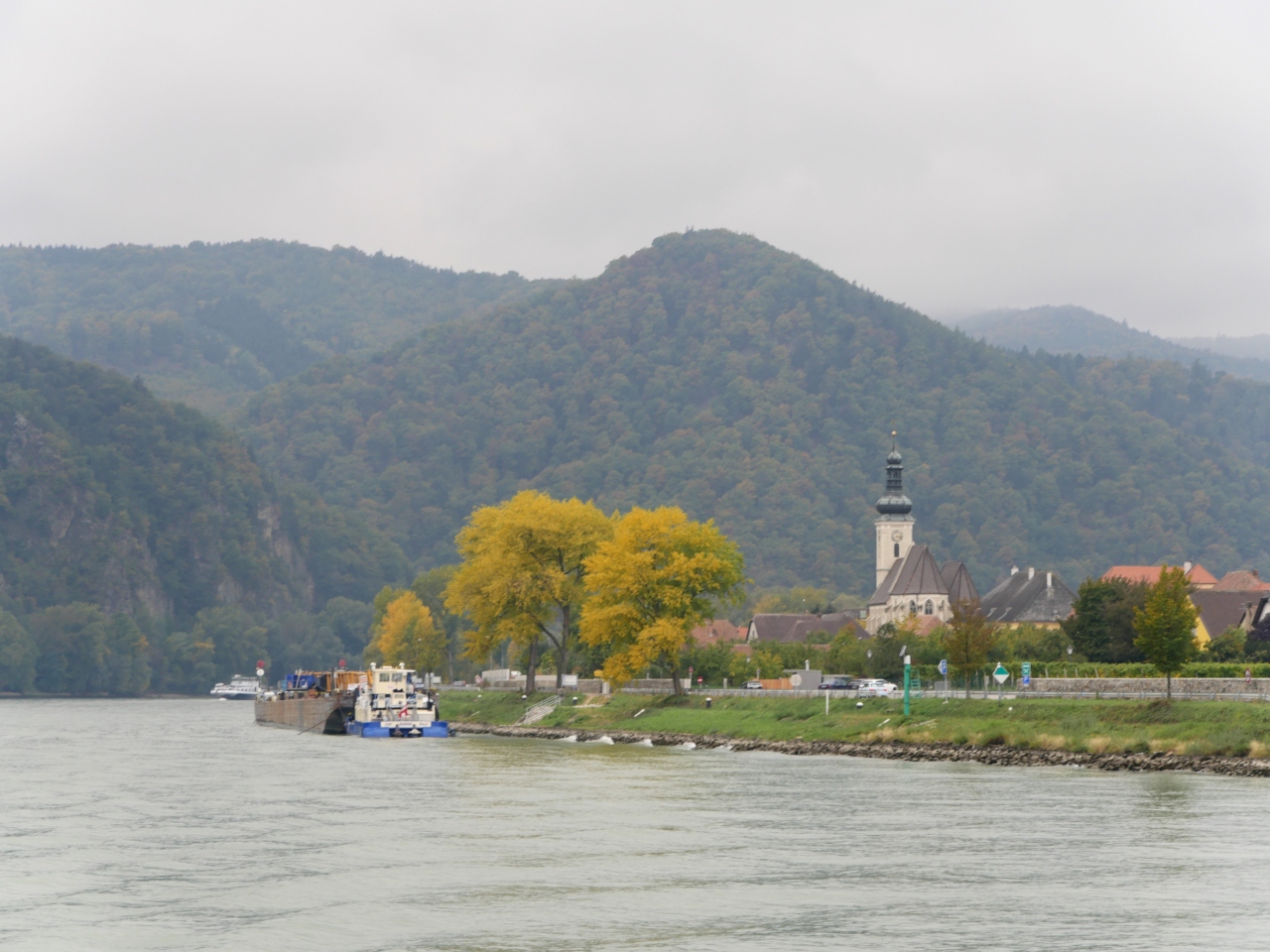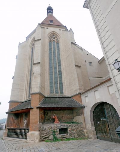 MelkからKremsまで全線乗ると約2時間かかり,もう一度WeissenkirchenやDurnsteinに行くには時間がかかる.Wachau鉄道に乗る楽しみなどと両立させるとすると,DurnsteinからKrems間もお手軽だ.城は少ないが川の周りの教会がよく見える.15ユーロ,所要20分なので少々高いが,お手軽な選択肢の一つともう