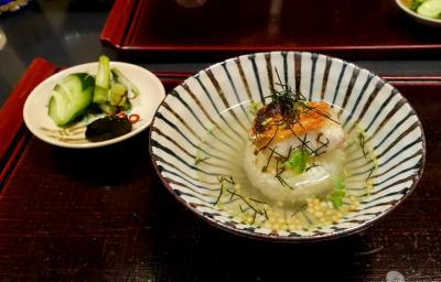 大阪らしいカジュアルで庶民的な雰囲気の店だが,料理はおいしかった.刺身やうになどおいしかった.最初に甘酒からすみがでてきた.最後にうにのが載ったお茶漬けのような,おにぎりのような〆の御飯もおいしかった.