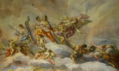 すばらしい教会 天井の壁画までエレベーターで近づくことができる