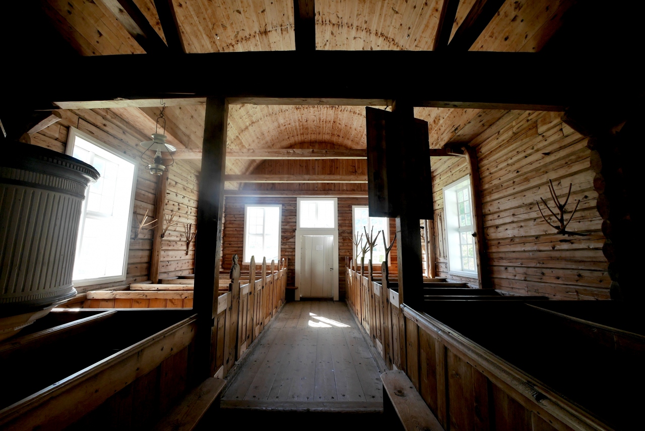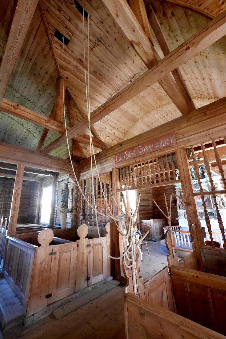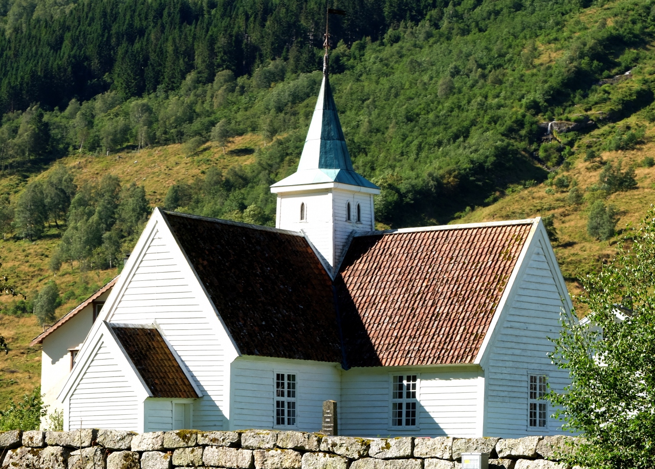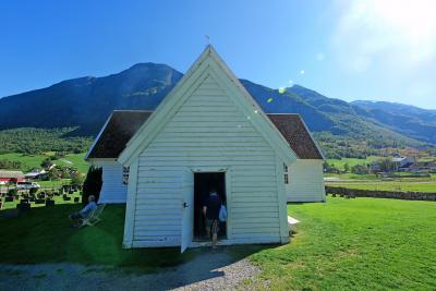 船からの観光客で混雑していたが,18世紀に作られた木の教会.両翼が張り出し,十字の形をしている教会だ.男性の帽子掛けの形など,サーメの影響があるような雰囲気だった.フィンランドのSodankylaのOld Church(Vanha Kirkko)を思い出す.木の香りも良いなかなかの教会!ルター派だが,最後の晩さんの絵が祭壇になっていた.OldenはBelgen方面からGeirangerに抜ける途中のNordfijordenの街だ.ここを通るのならぜひよるとよい.Stav教会や石教会とはまた違った味だ