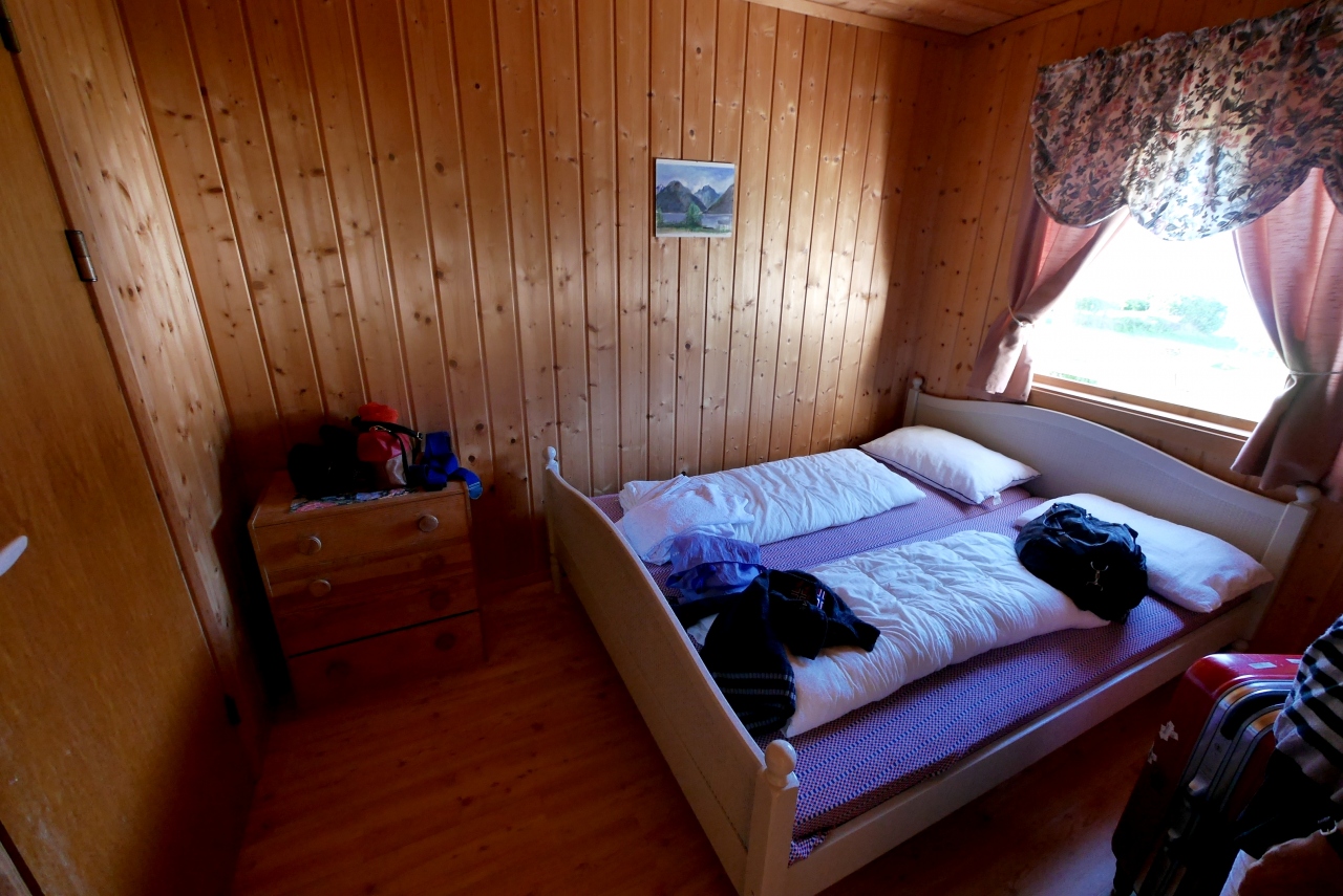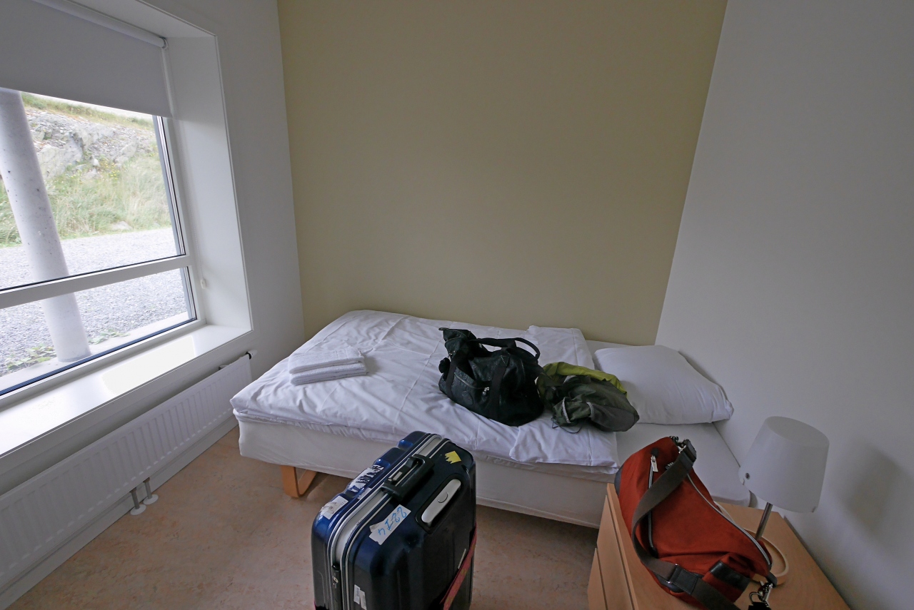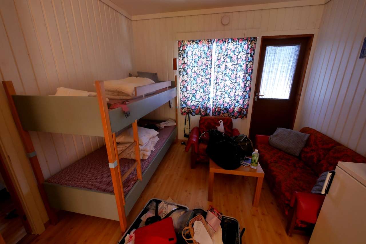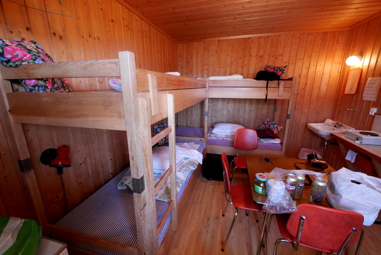 ここは贅沢なアパートでなく,一部の部屋を除いて,共同トイレ,シャワー,洗濯機,調理場がある.私たちはBooking,comで二部屋に簡易調理台,シャワートイレ付の部屋を申し込んでおいたが少し狭いのでもう一部屋空いている部屋を借りた.合わせて1泊1250NOK.それでも一人1泊5300円と安い!この物価の高いノルウエーではうれしい限りだ!