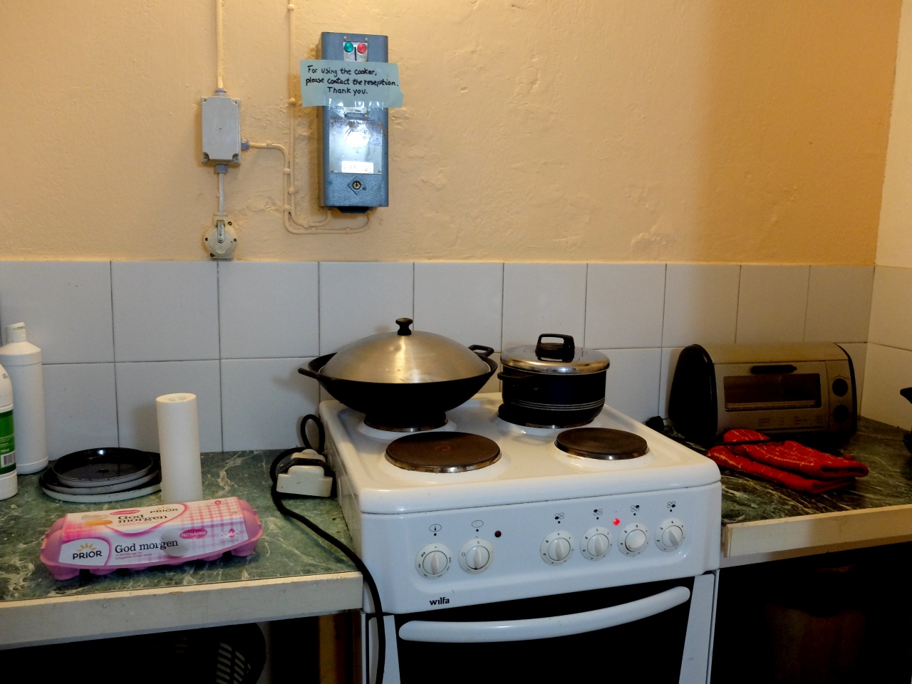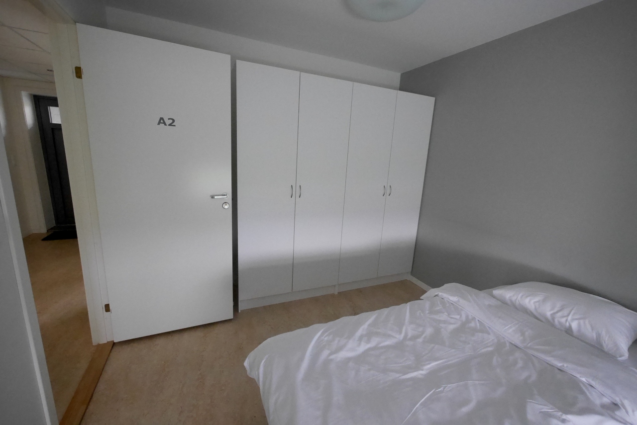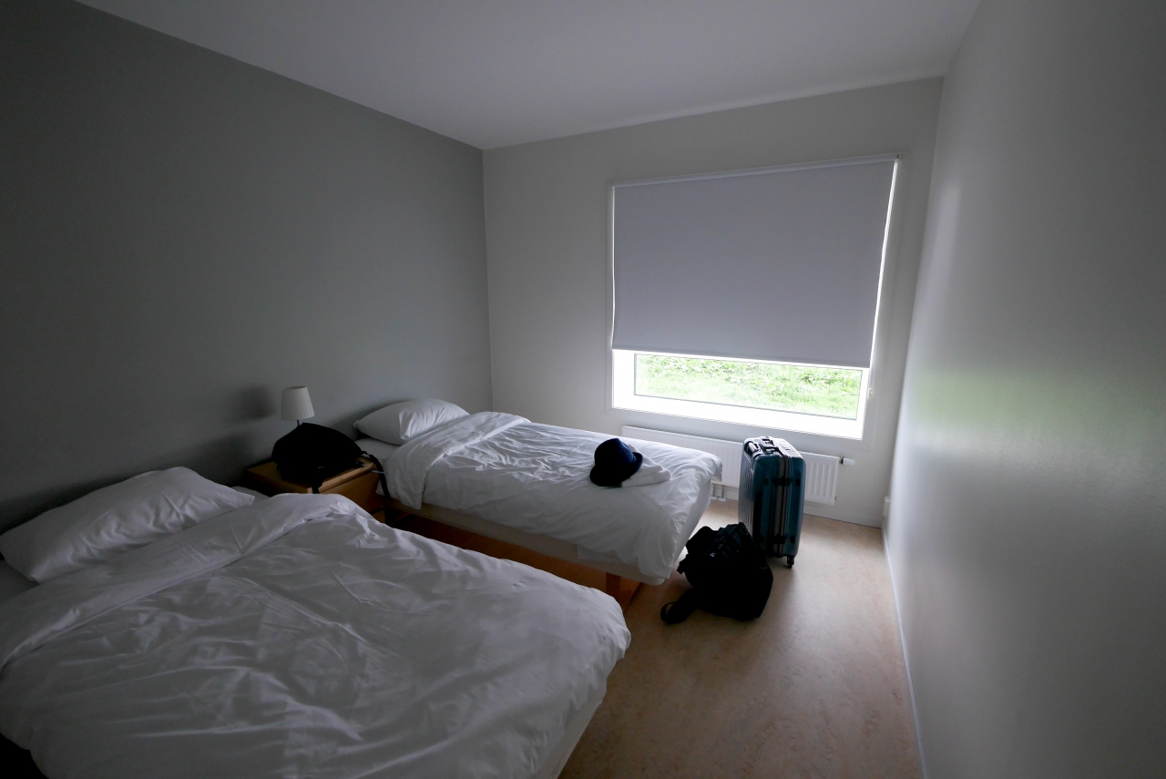 ここは贅沢なアパートでなく,一部の部屋を除いて,共同トイレ,シャワー,洗濯機,調理場がある.私たちはBooking,comで二部屋に簡易調理台,シャワートイレ付の部屋を申し込んでおいたが少し狭いのでもう一部屋空いている部屋を借りた.合わせて1泊1250NOK.それでも一人1泊5300円と安い!この物価の高いノルウエーではうれしい限りだ!