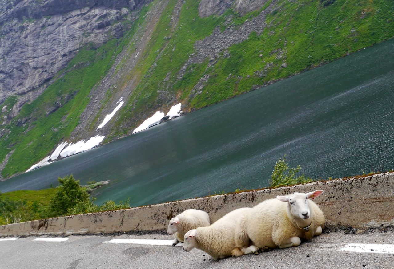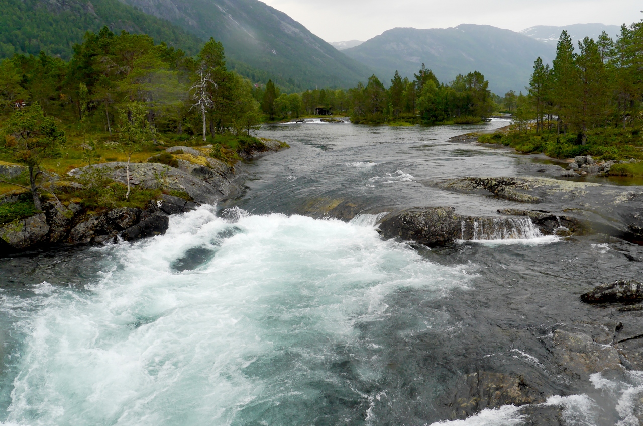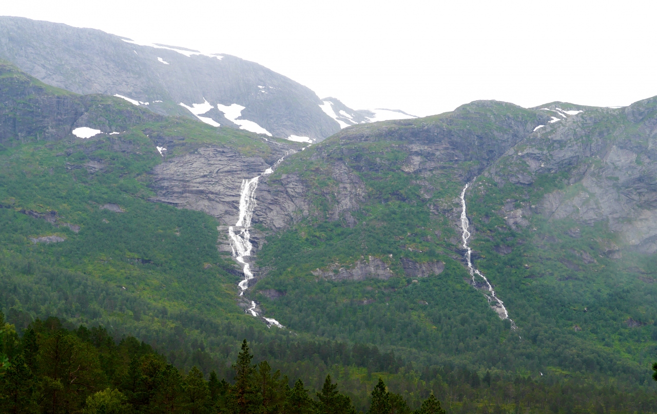 VangsnesからフェリーでDrasvikにわたってE39号線,Moskogまでは絶景が続く道だ.その途中にあるFossestienは急流を見ながらのハイキングコースになっている.私たちは滝を見ただけだがこのあたりをハイキングするのも楽しそうだ