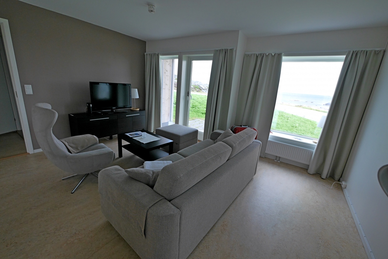 アパートは1棟2LDKで2000NOK.素晴らしい部屋だった.しかし事務所には誰もいず張り紙があるだけ.部屋は開いていて鍵が部屋の中にあった.チェックアウトまで関係者には誰にも会わず.まあこんなところも珍しい.しかし中の部屋は最高.Rundeは地図で見ればわかるが,オーレスンから車で2時間(フェリー1回含む)の島々の先にある島.フィヨルドだけではないノルウエーの良さがわかる島だ.軟白化してのんびりと海鳥を見るにもいいところ