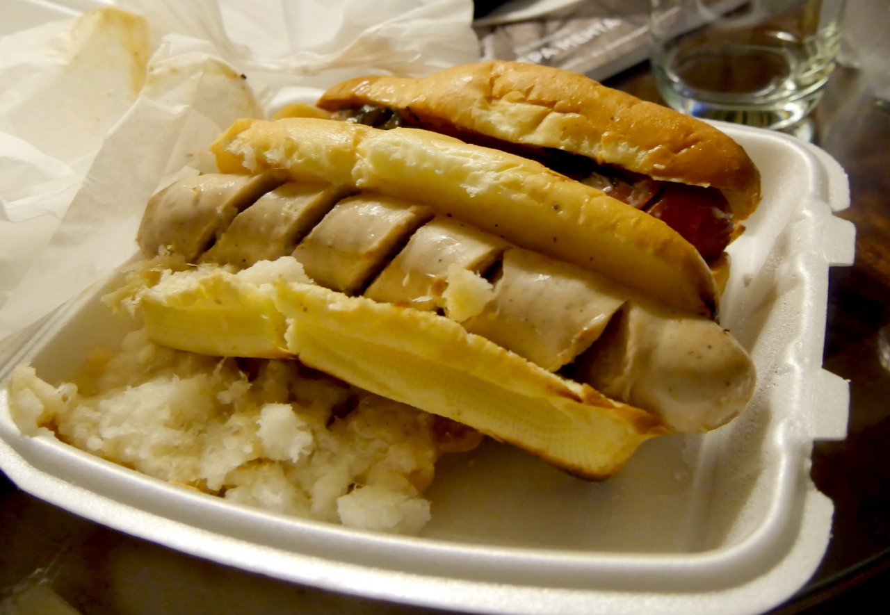 確かに大根おろしで食べるソーセージはさっぱりしてまあまあのあじ.照り焼きソースのホットドックも日本人好みかな.まあ日本でこんなホットドックを食べていると誤解されるかもしれないがご当地B級グルメとしてはいいのかな.- 旅行時期