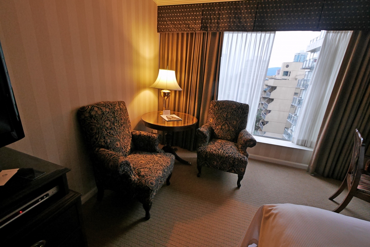 Sutton Place Hotel Vancouverに5泊.97,670円,1泊19512円だが朝食別.ホテルはとてもシックで部屋は広く5泊してもなかなかよかった.風呂も大きく,シャワーが別なのがうれしい.ソファーと机もあり,仕事もできるしくつろげる.非常に良かった.ただし,朝食代別.チップこみ34ドルCAD 3113円と高い.でもコストベネフィットは良いホテルだった