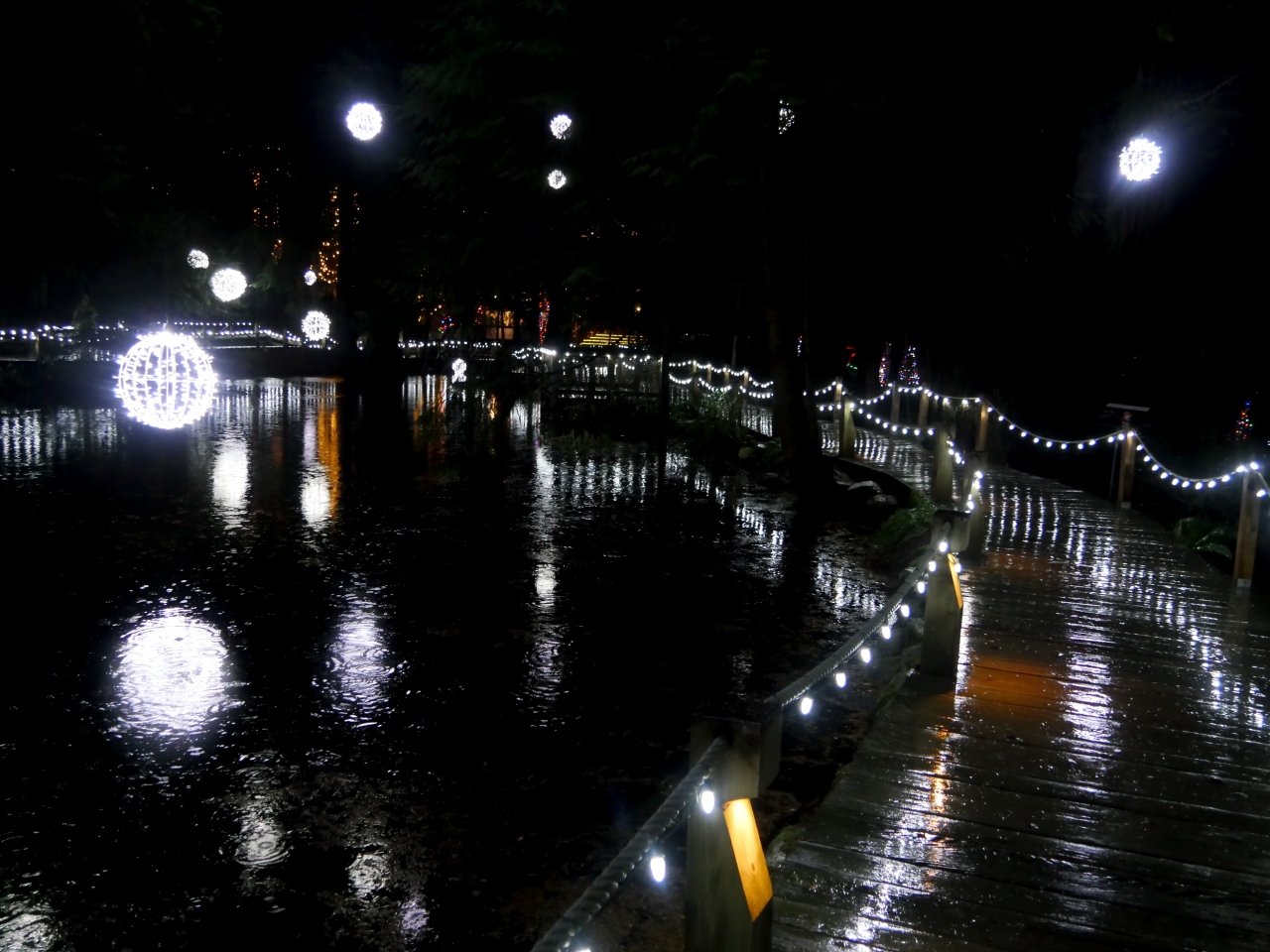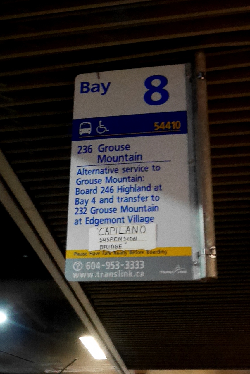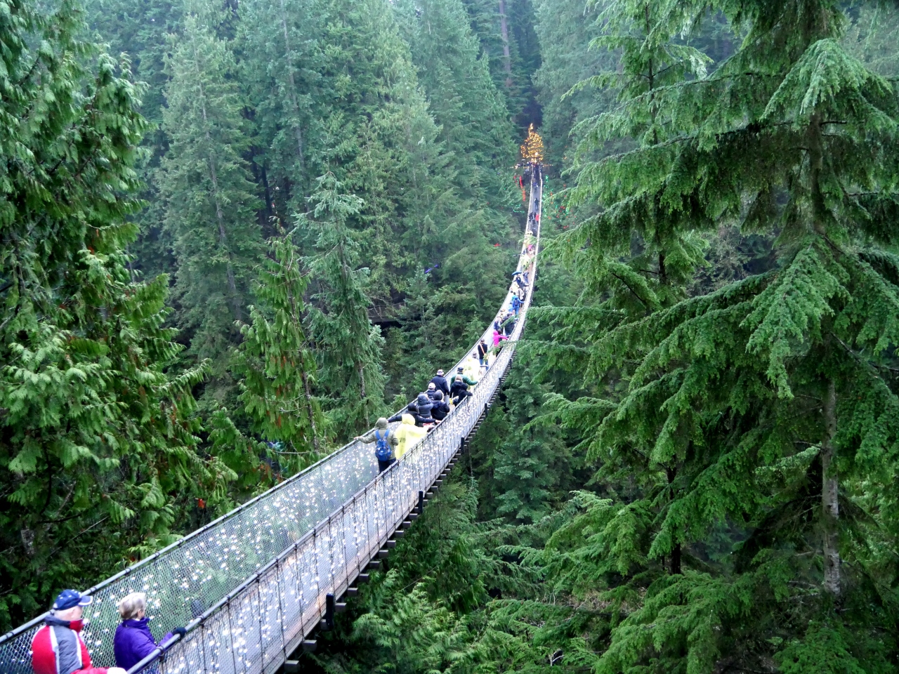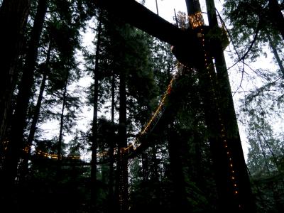 Lonsdale Quay Terminal経由で236番のバスでCapilano Suspension Bridgeに.実は雨で外が見えず,運転手には行き先を言ってあるはずだが,注意してくれずそのまま,偶然乗り合わせた,もう一人の日本人の女性と乗り過ごしてしまう.終点のGrouse Mountainで折り返す羽目になった.入場料37.95CADとバカ高い.まあ木の上に登ったり断崖の中断を歩いたりできるのでしかたないか.自然のすごさをエンターテイメントにした施設だ.雨の冬の日に行ったが,ライトアップはそれなりに良かった.