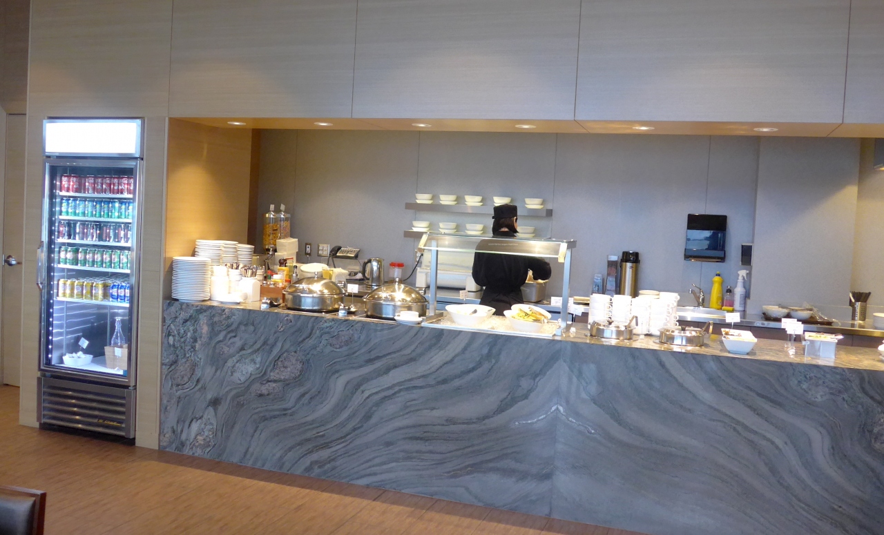 なかなかいいラウンジ.ワインやビールは,ウエイターに注文すると入れてくれる.ホットヌードルやシューマイなど中華料理が多い.バンクーバーは中国人の多い街だからか.居心地は良く,出発までゆっくり過ごすことができた.ビジネスラウンジとして合格